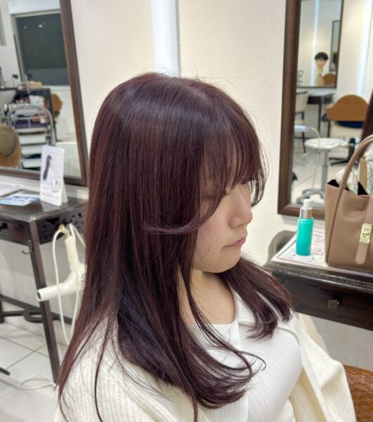 今回はブリーチなしでできるピンク味のある紫にしたいとご要望をいただき施術させていただきました!