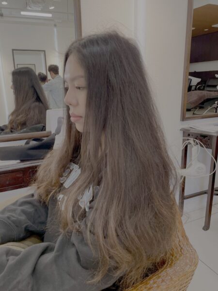 今回は、顔まわりカットで前髪を流れるように整えたシルエットのビフォーアフターを