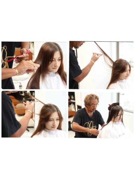 今からもっと伸ばしてロングにしていきたいと言う事で、ベースをDIFINOオリジナル技術でアールカットして、一度乾かして髪の動きを見ながらスライドカットしていきます。