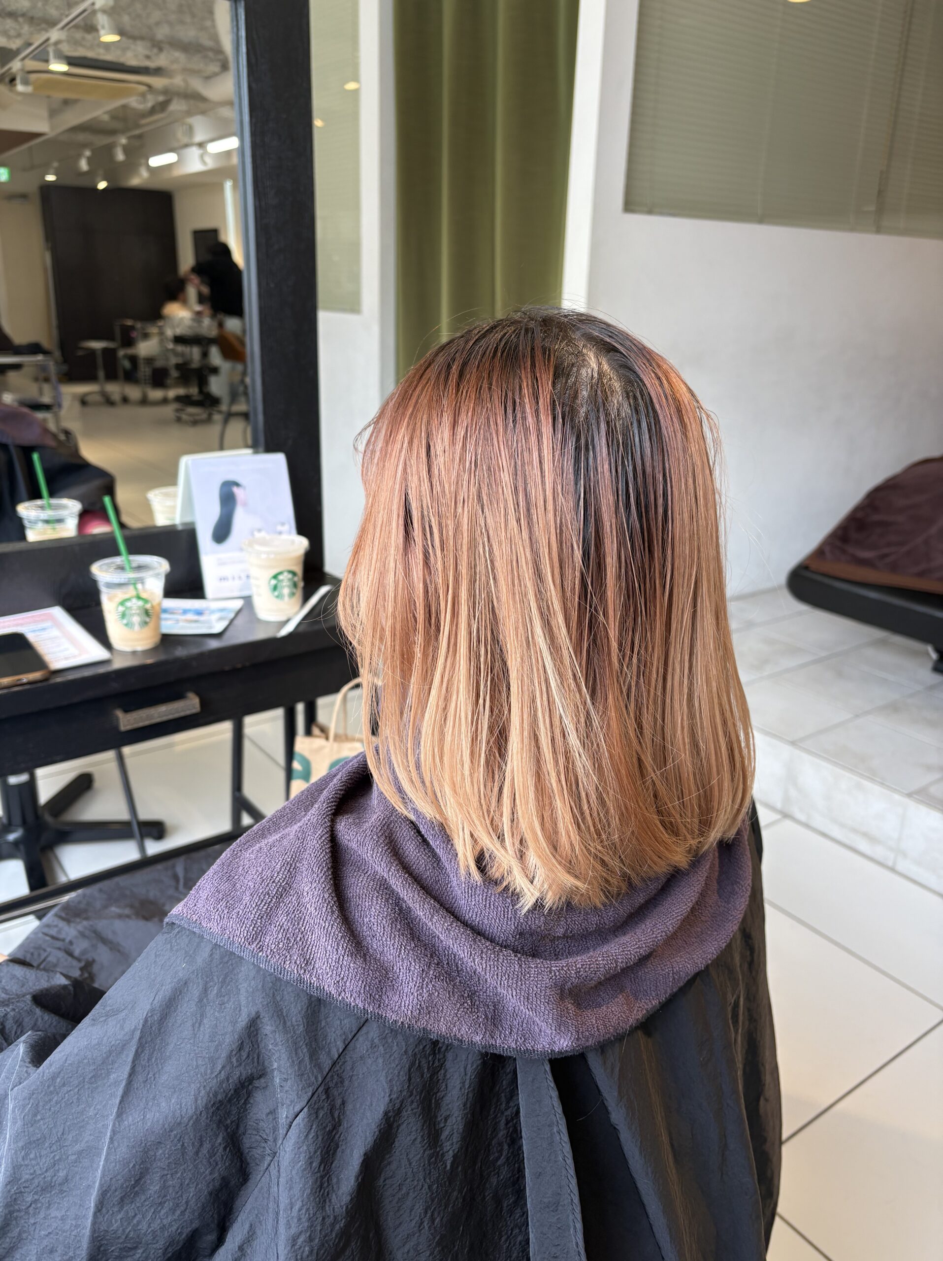 カラーはブリーチを使わないダブルカラーで、柔らかいオレンジに。