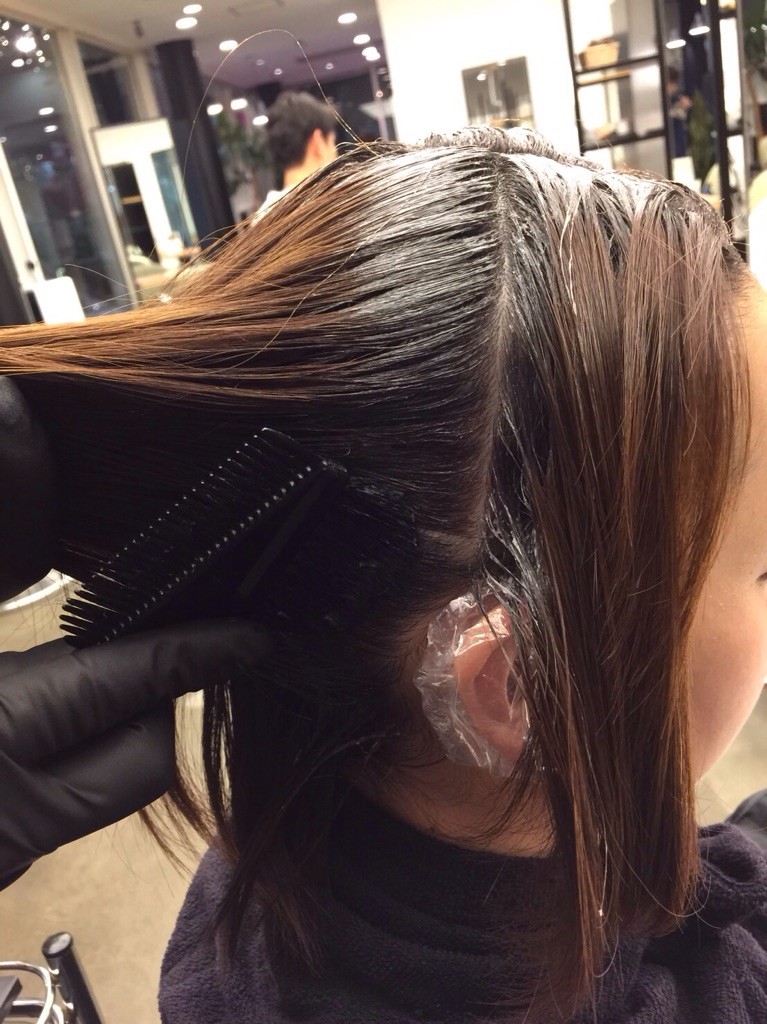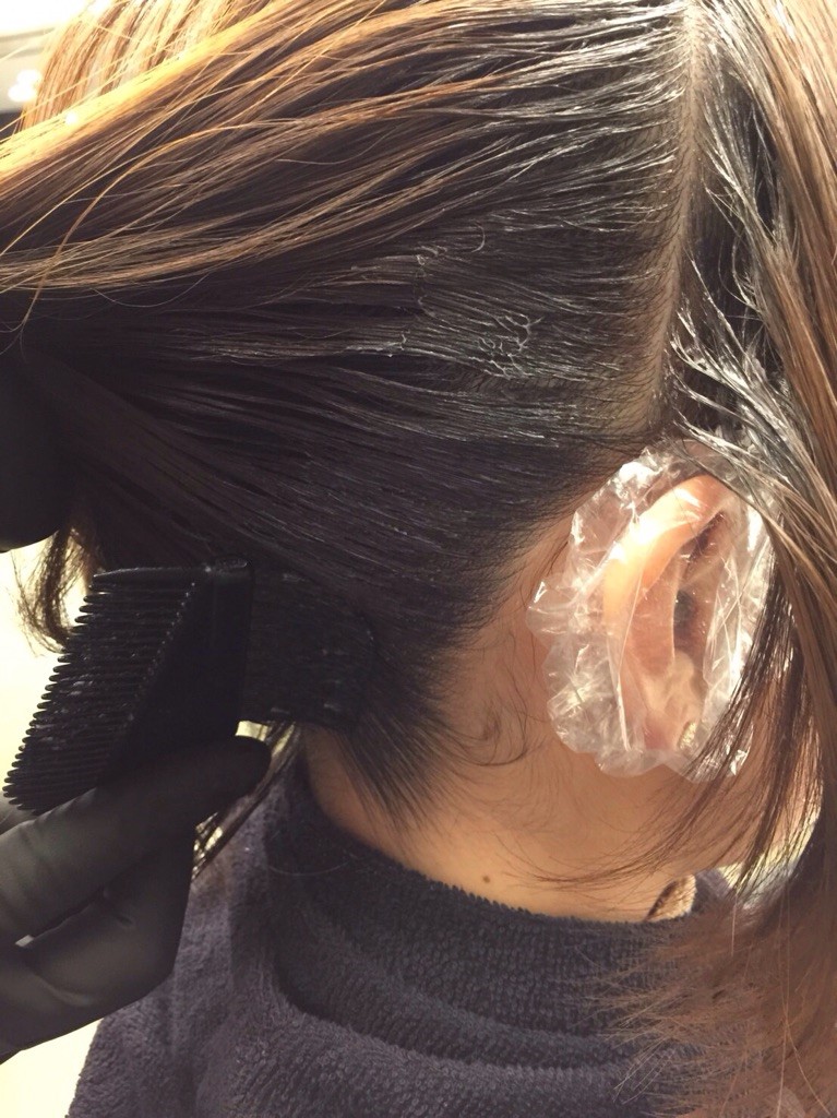 毛先を塗る際は、しっかりと先程塗布した根元とのカラーとなじませて塗ります。
