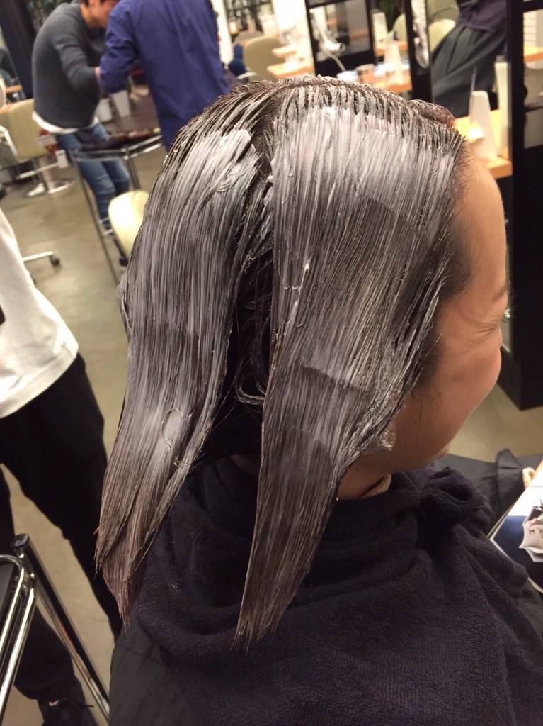 1番ダメージしている毛先はダメージレスなカラー剤にチェンジします。