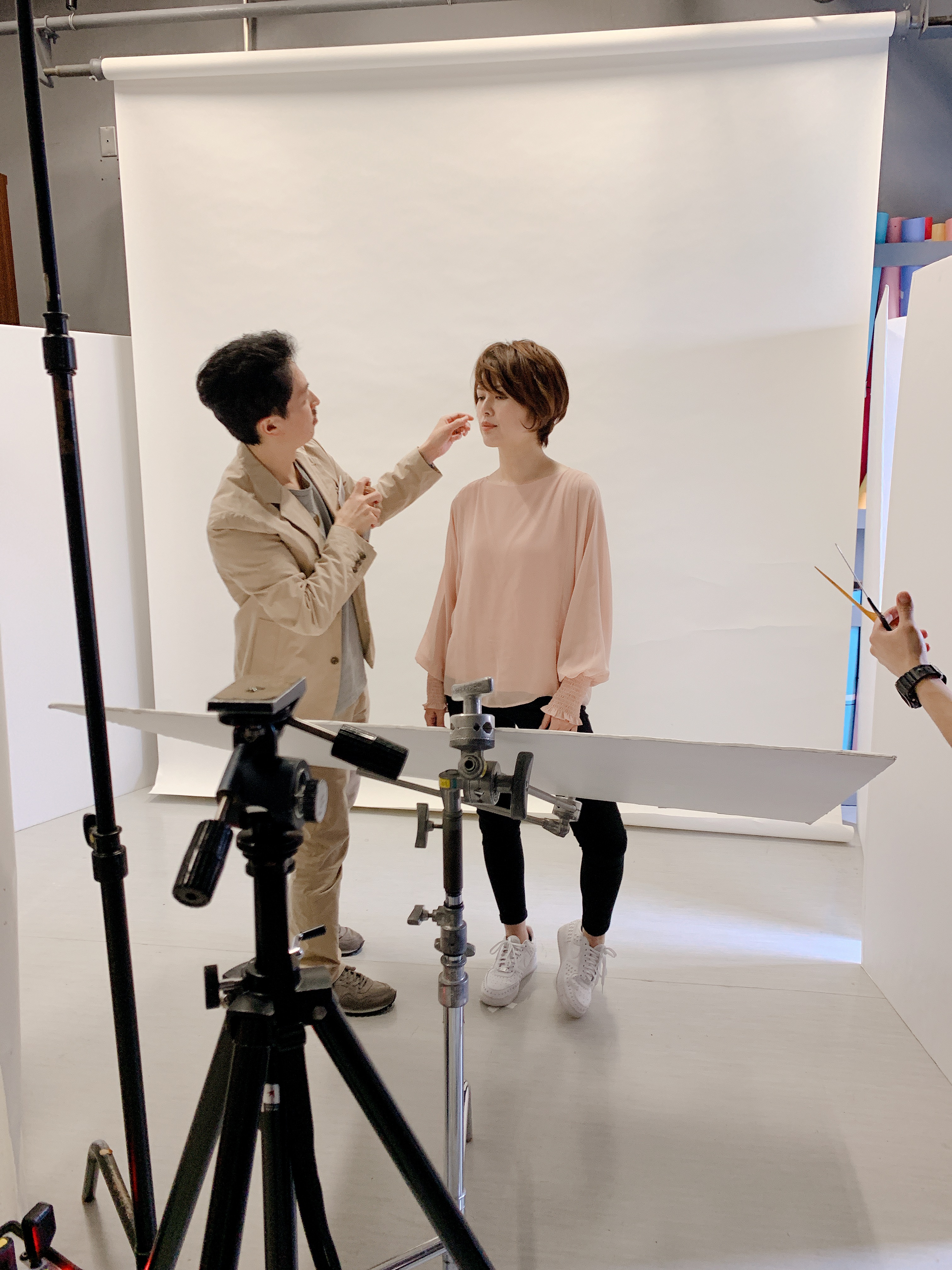 モデルの深川さんは撮影慣れしているのでスプレー使用のプロセスシーンでは
