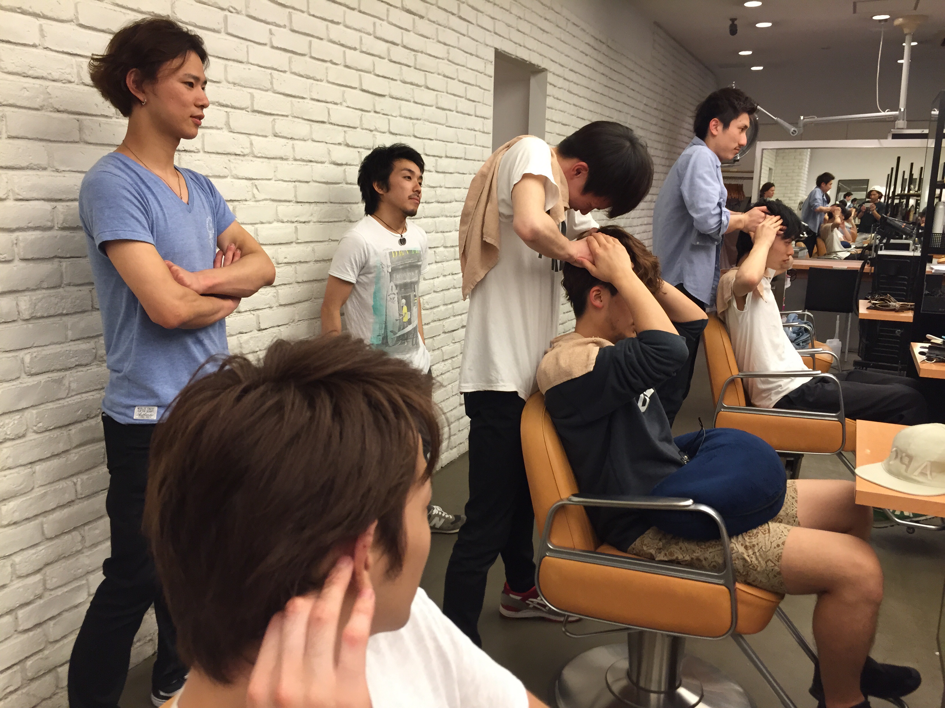 しっかり後ろで新人の飯野もマッサージ練習をしています!