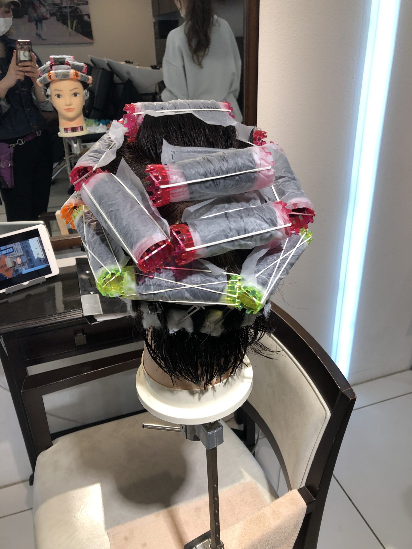短い髪の毛をピンとコットンで巻くのは