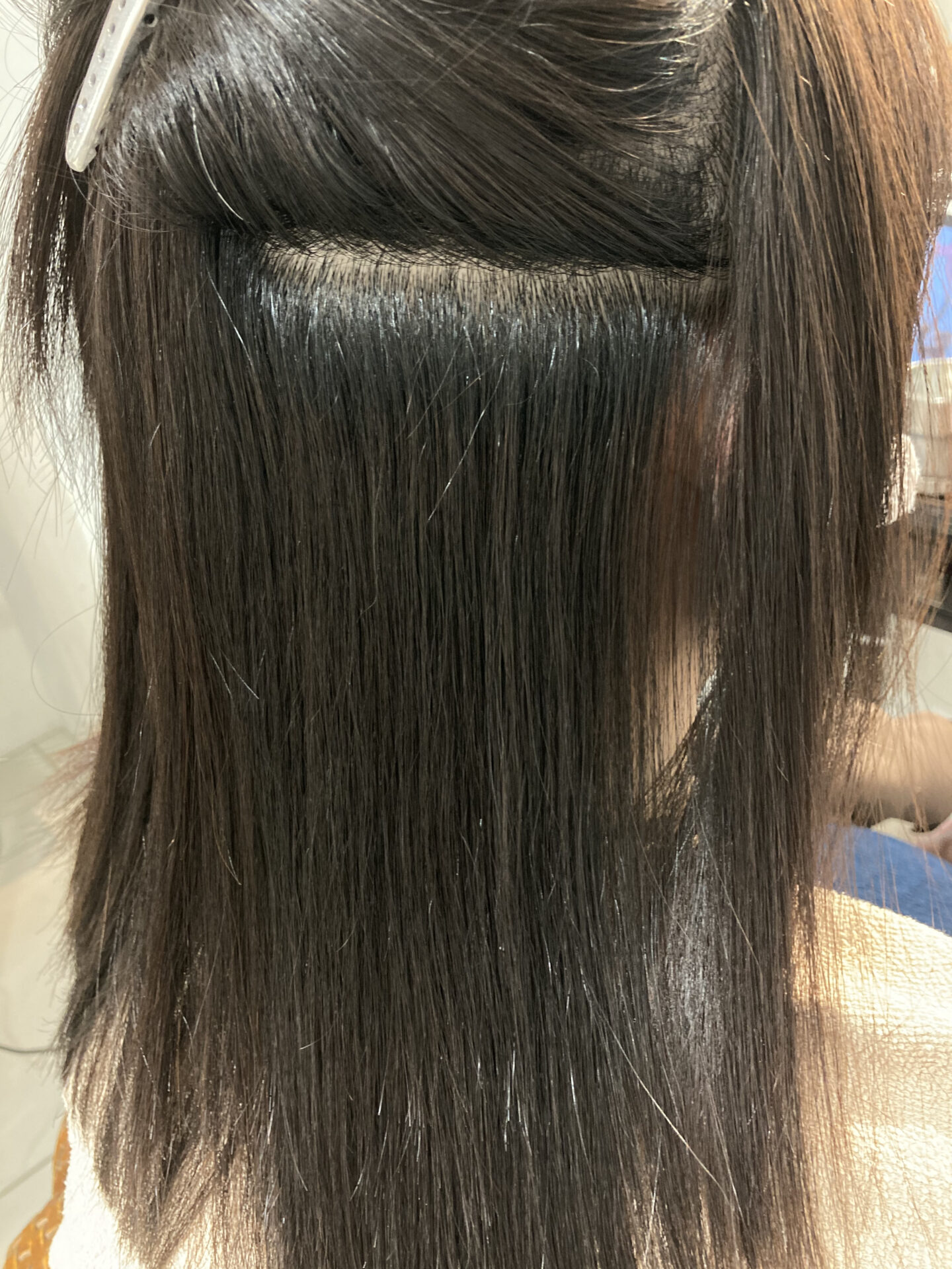 今回根元に癖はないのでストレートは根本1センチくらいからかけています!