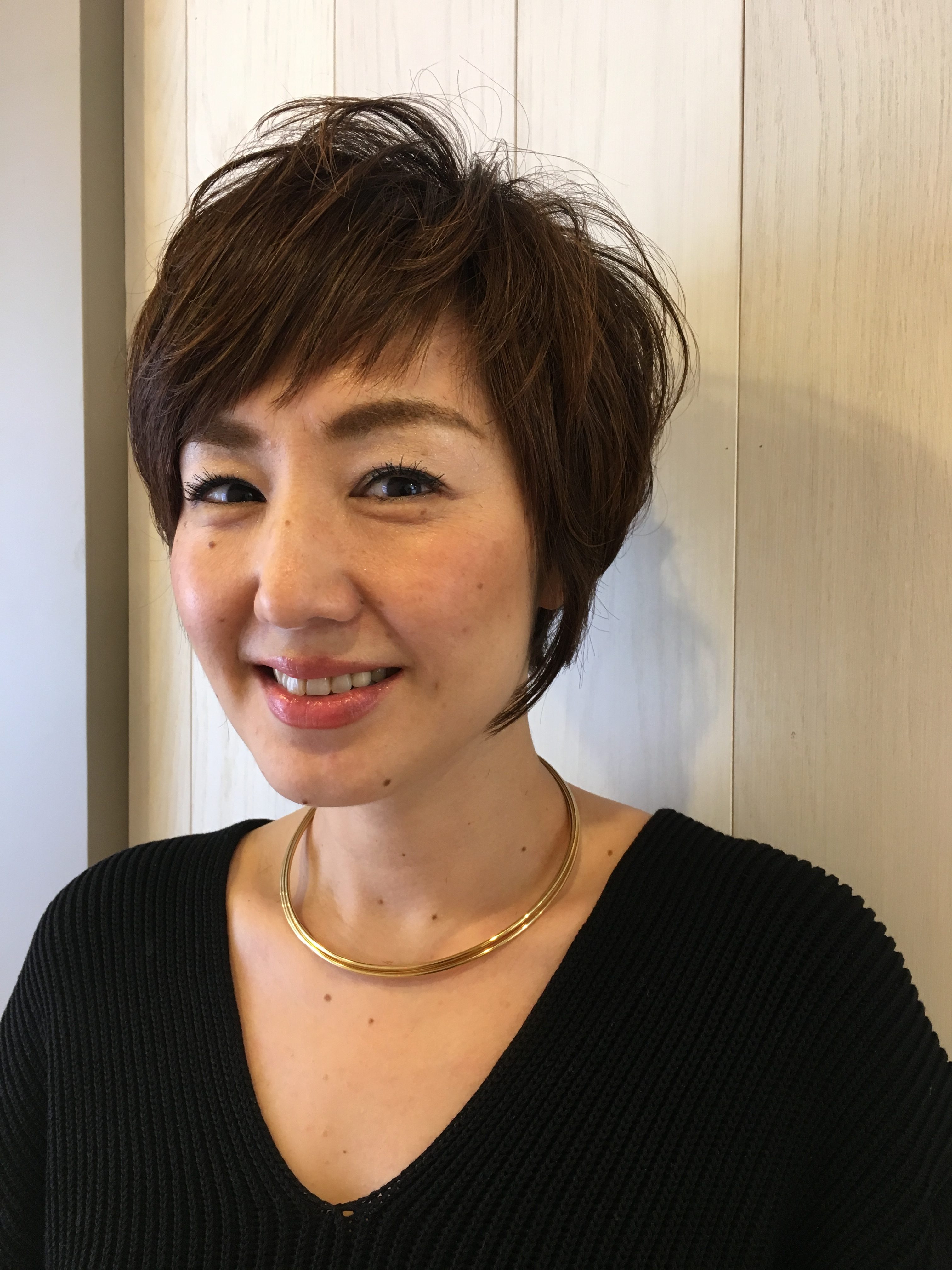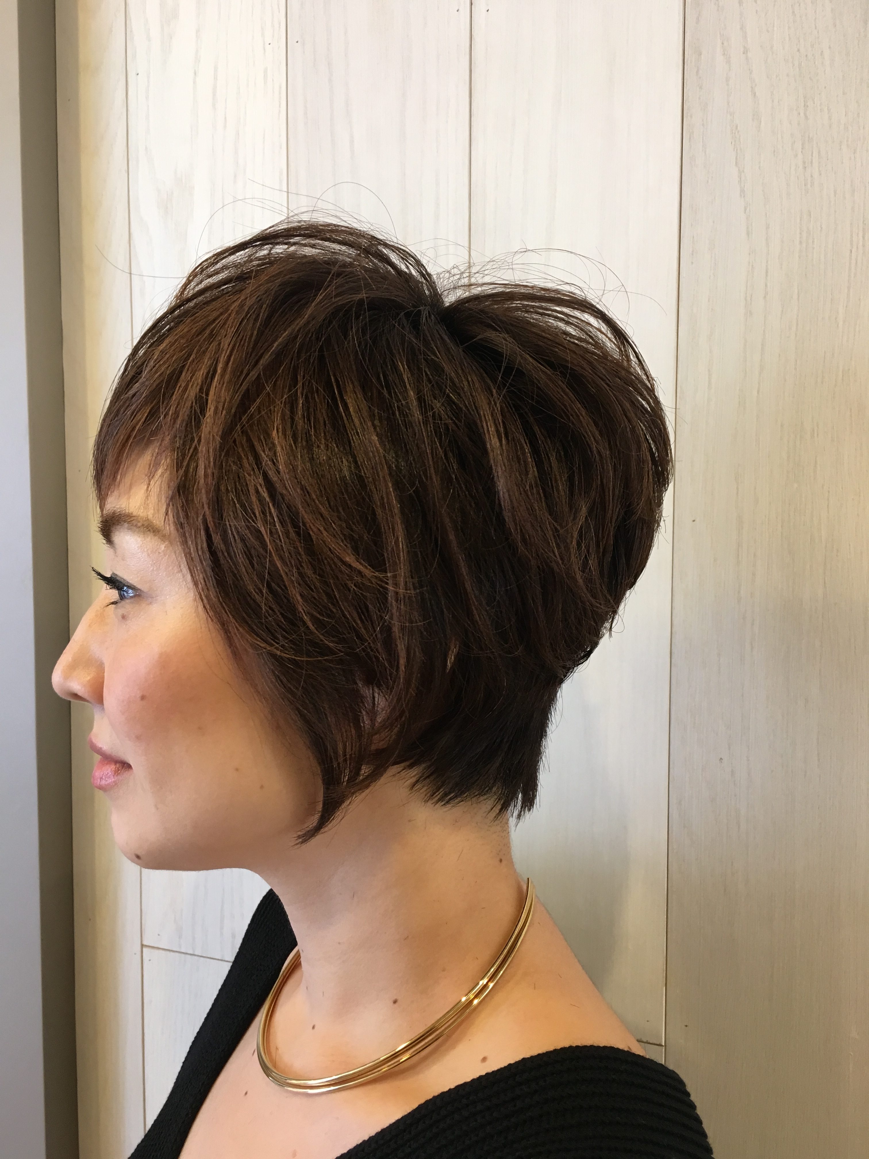 襟足は短く首に沿わせ、後や横からみてもキレイなフォルムに見えるように後頭部にボリュームがでるようにしました!