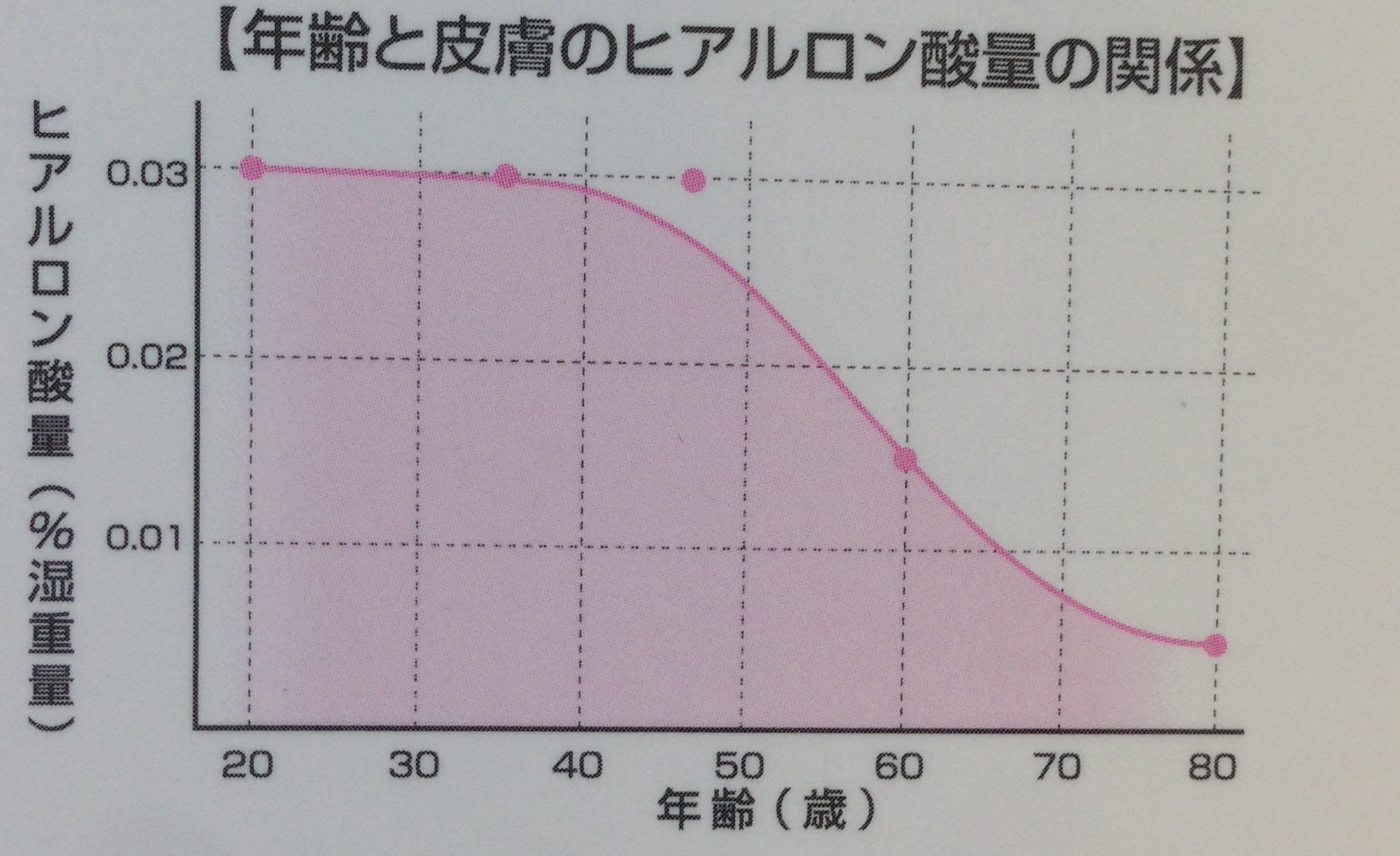まず、どうやって頭皮が硬くなるかですが、1つは肌のヒアルロン酸が年齢と共に減少して潤いがなくなるためです。