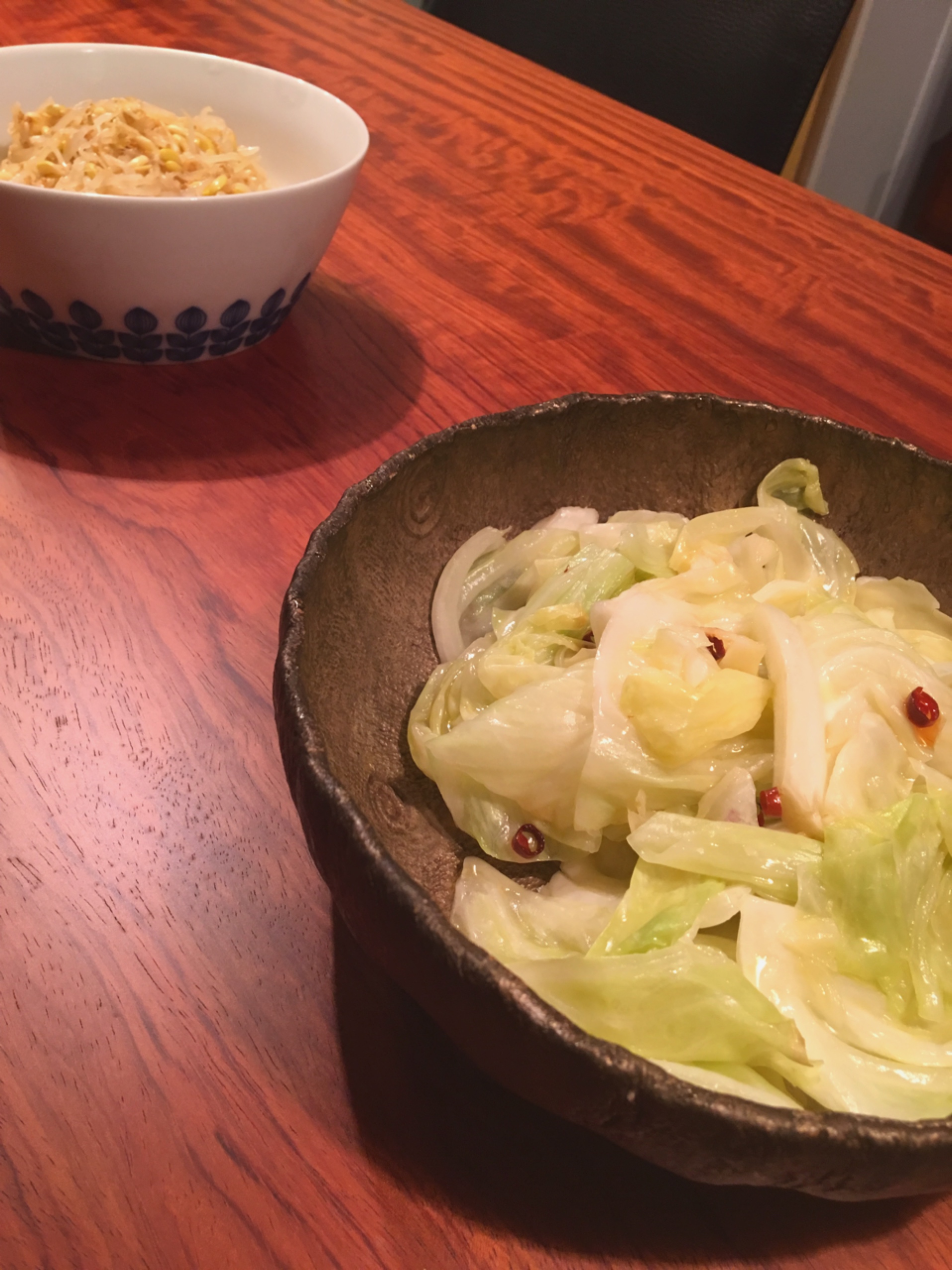 朝から仕込んで下さってたもやしと、キャベツのナムル。
