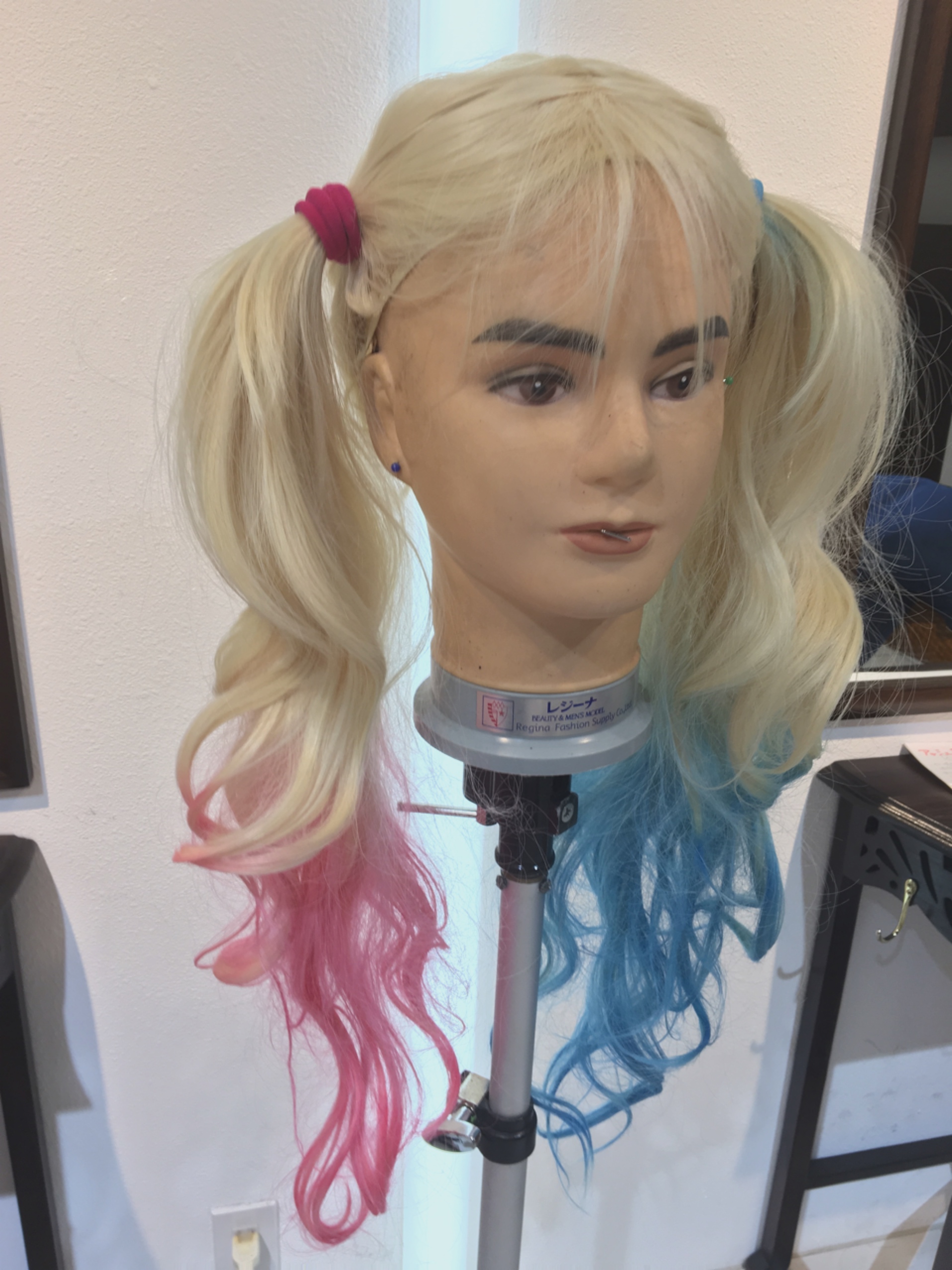 金髪のウィッグをツインテールして、毛先はカラーチョークで色を着けました!