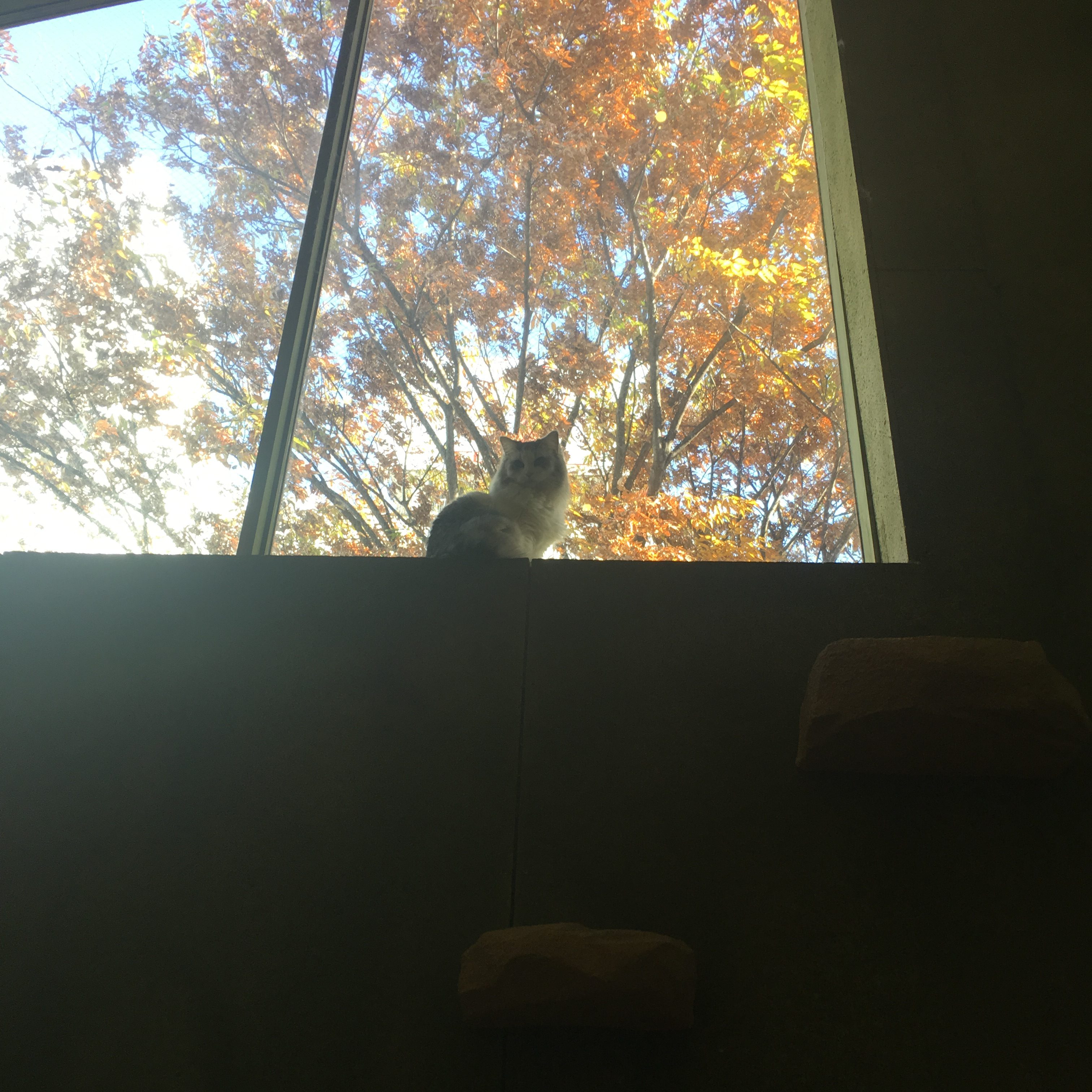 高さ5メートルちょっとの窓のところに登って黄昏る猫さん