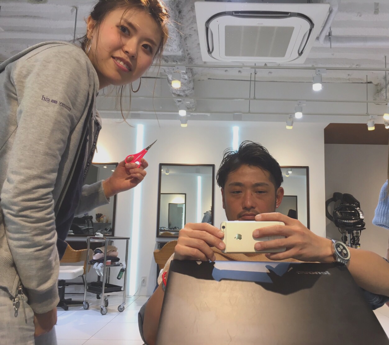 先輩スタイリスト、槌田さんに眉カットを教えて頂いています★