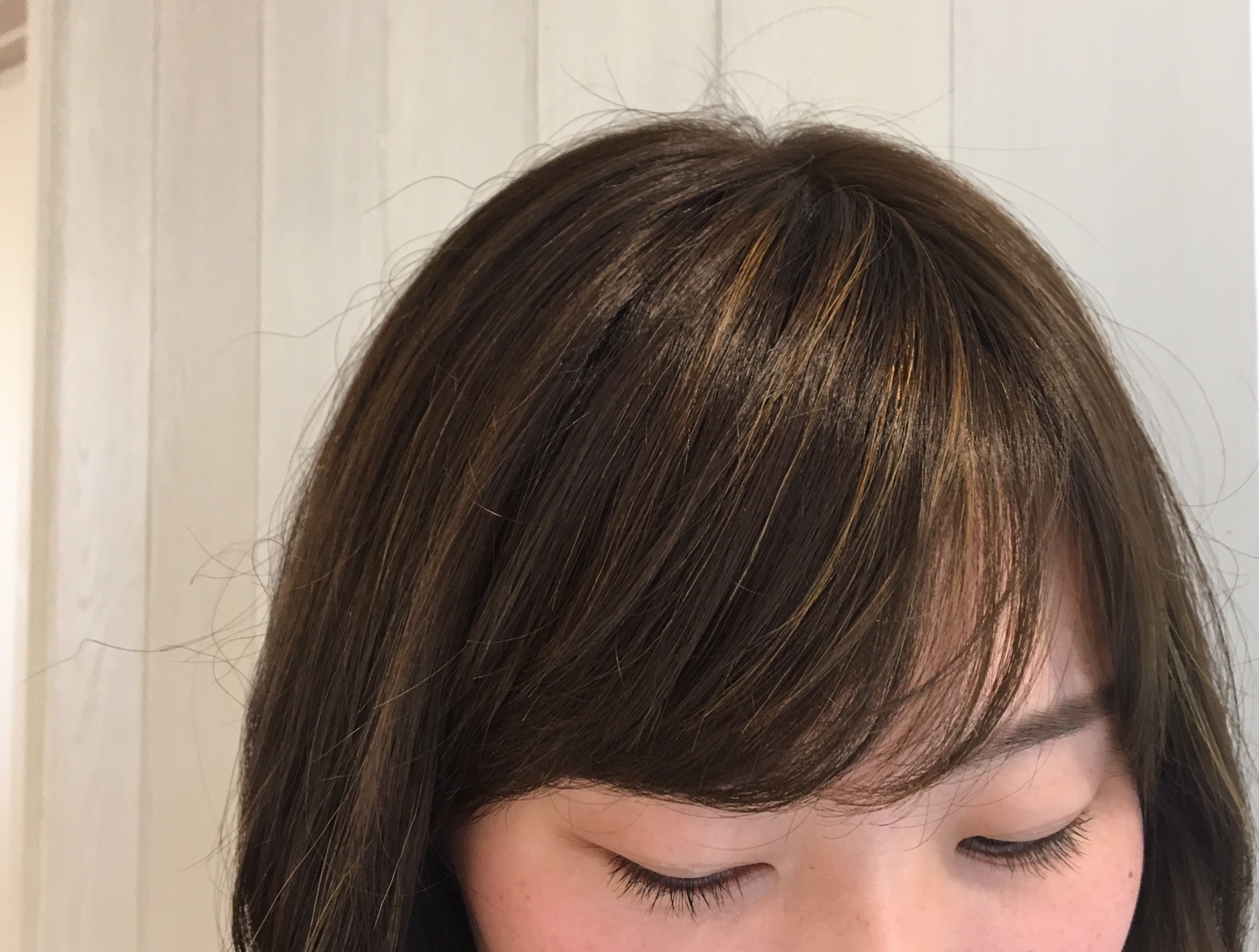 前髪は、毛先の方は暗めにして目力がアップするように細めに。普通のハイライトで入れました!