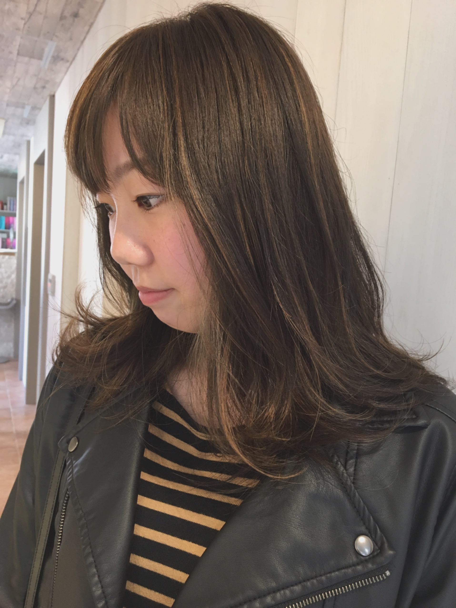 お店オリジナルのハイライトの入れ方(キョッシュ)で入れると、根元は細め〜毛先は太めのハイライトが表現出来ちゃうんです★