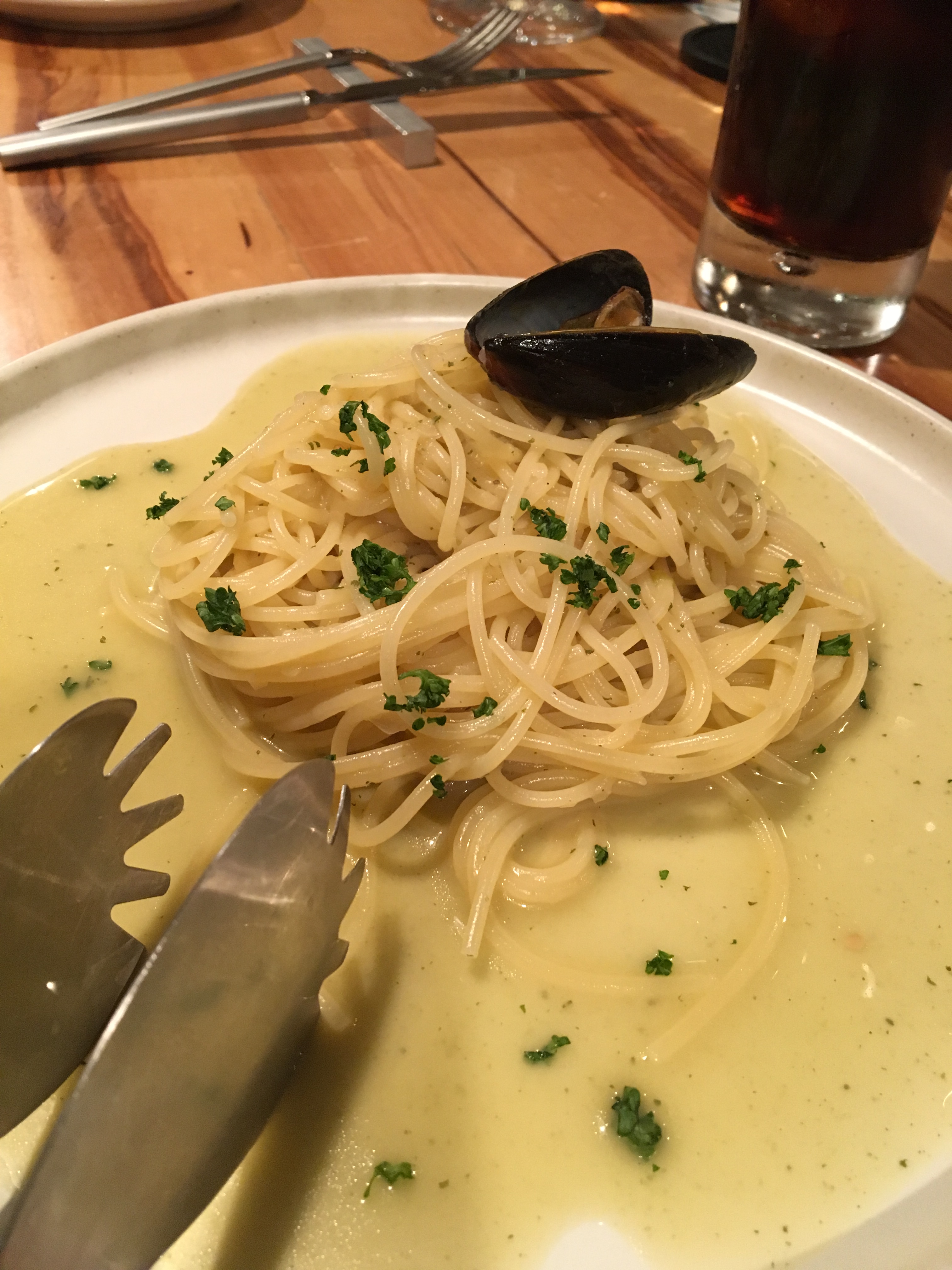 色んなテイストのムール貝があって、希望があれば最後にこの残ったお出汁でパスタorリゾットを作ってもらえます♡