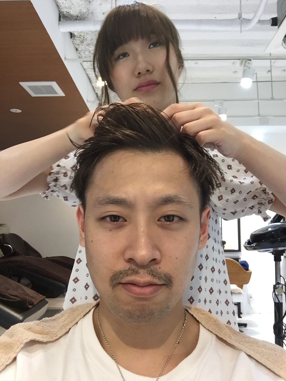 最近の出来事と言えば新人さん達が無事に正式入社した事くらいですが、マッサージを合格するとメンズ仕上げを練習し、メンズのお客様を乾かしたり、スタイリングしたりする練習をしなくてはいけません…