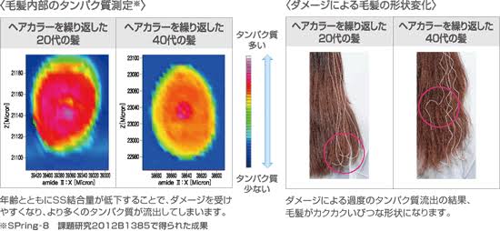 毛髪たんぱく質同士をつなぐ重要な結合でもあるSS結合が、年齢とともに減少していきます。