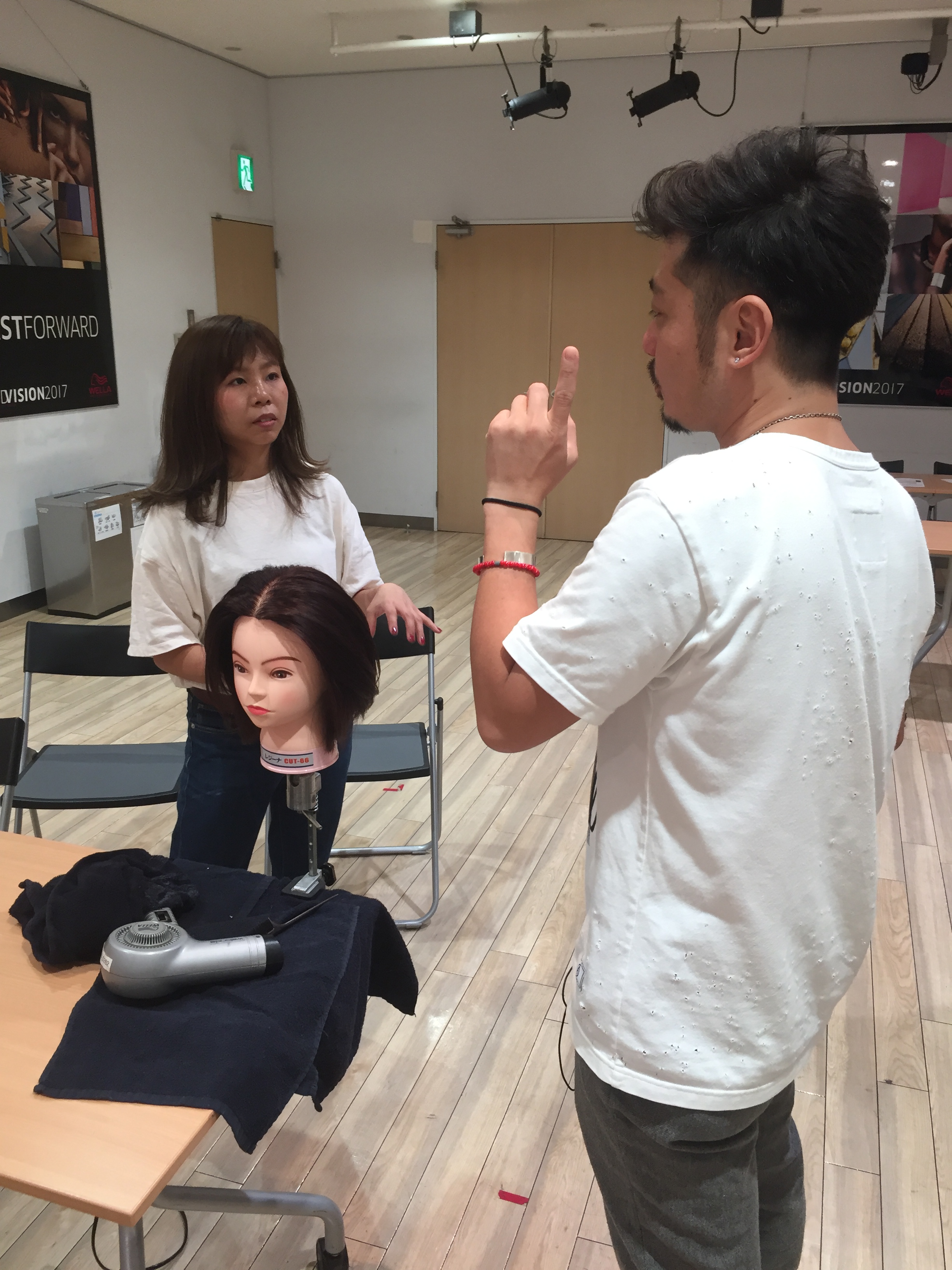 - こんな感じでモデルさんの実演からウィッグを同じようにやってみる。