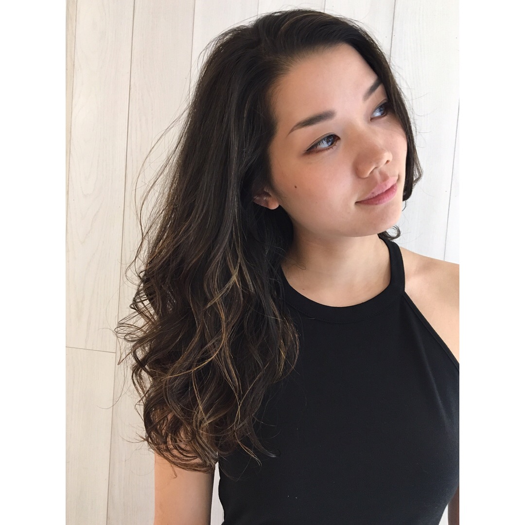 キョッシュ(ハイライト)を入れることで、立体感が出て、暗髪カラーでも軽やかな印象になります★