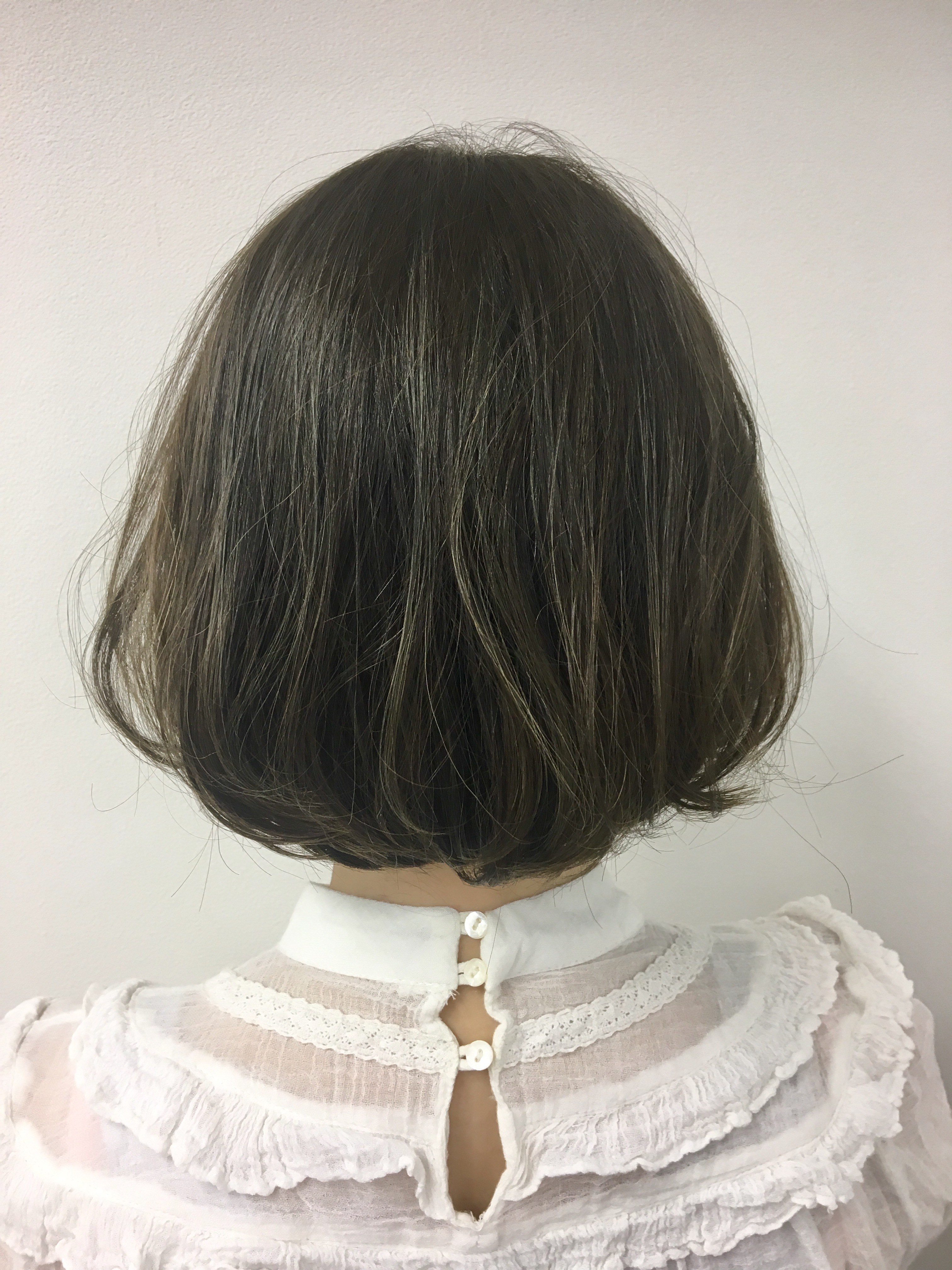 私がオススメする【アッシュグレージュカラー】は、ブラウンではなくなりたい色味(アッシュ系の青味と、グレー系の無彩色)の染料を濃く配合しているので、ズンっと重たい印象にはならずに柔らかさや透け感を感じる暗髪カラーになります。