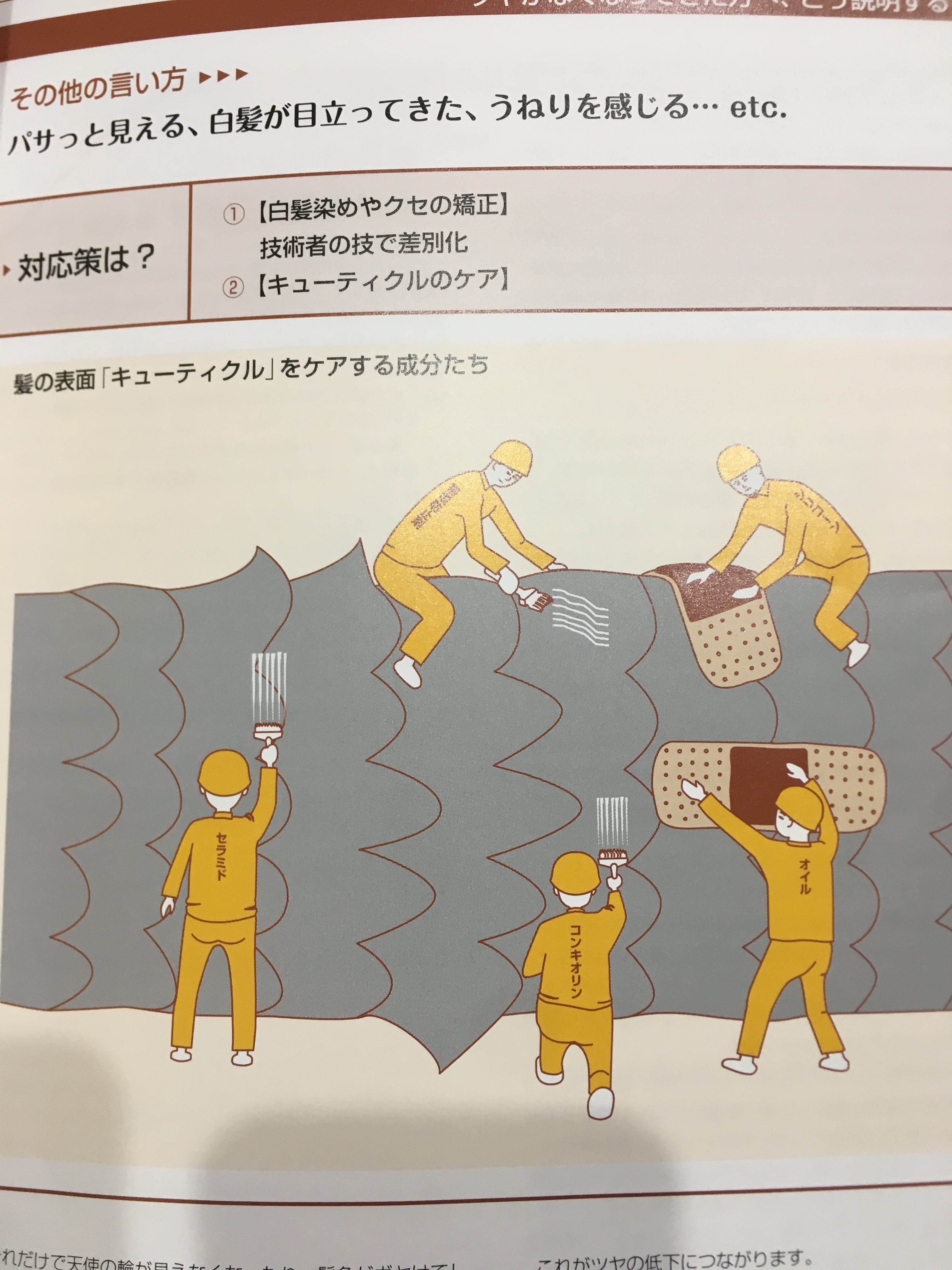 これらは、水分量の低下、キューティクルの劣化を引き起こします。それ以外にツヤ感を低下させるのは、白髪の発生、クセの発生と言われています。