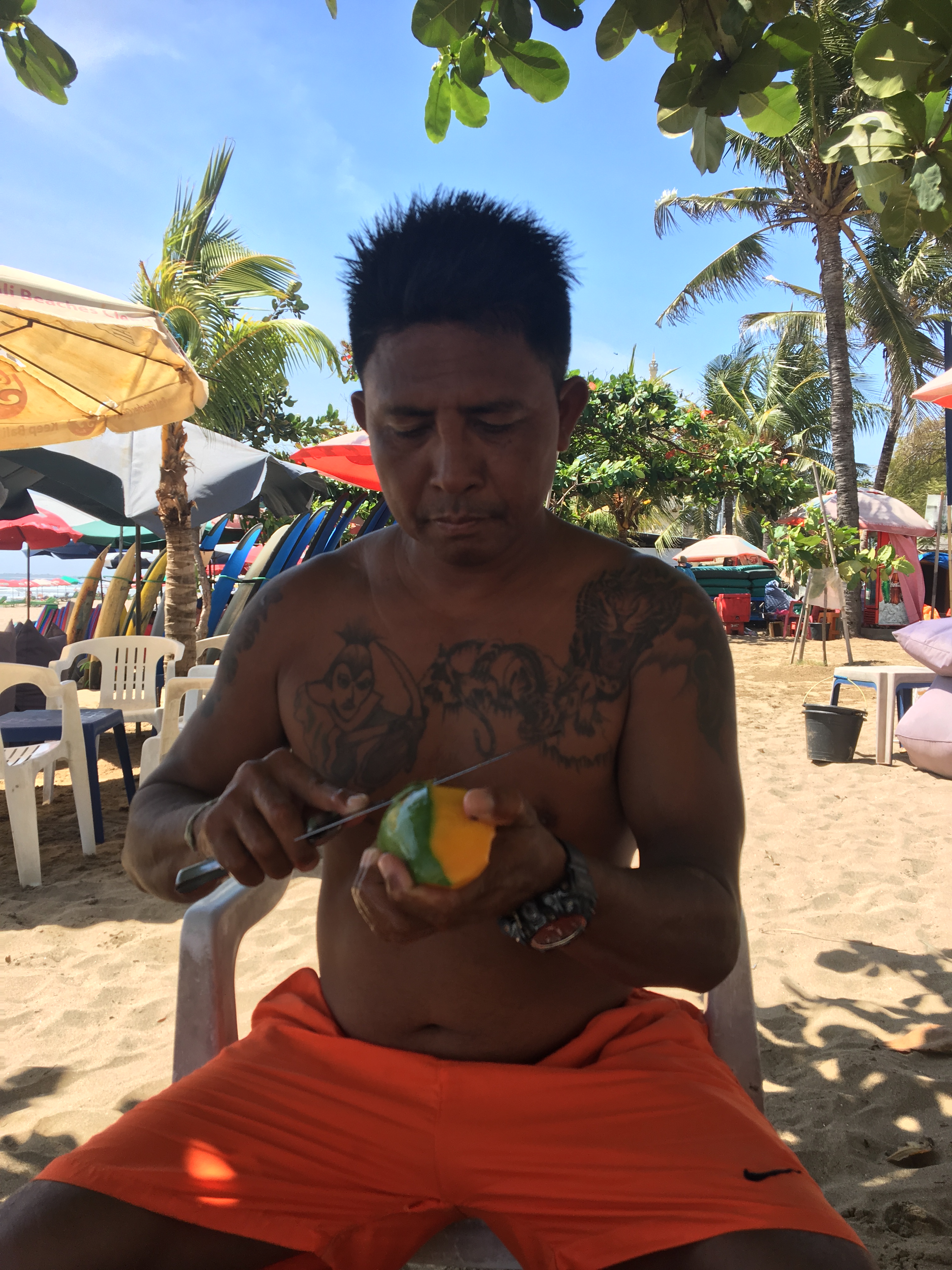 海では、サーフボードをレンタルしたショップのおじさんがとっても親切にサーフィンを教えてくれたり、サービスしてくれたり、娘を紹介してくれたり、果物やコーヒーまでサービスしてくれたり…!笑