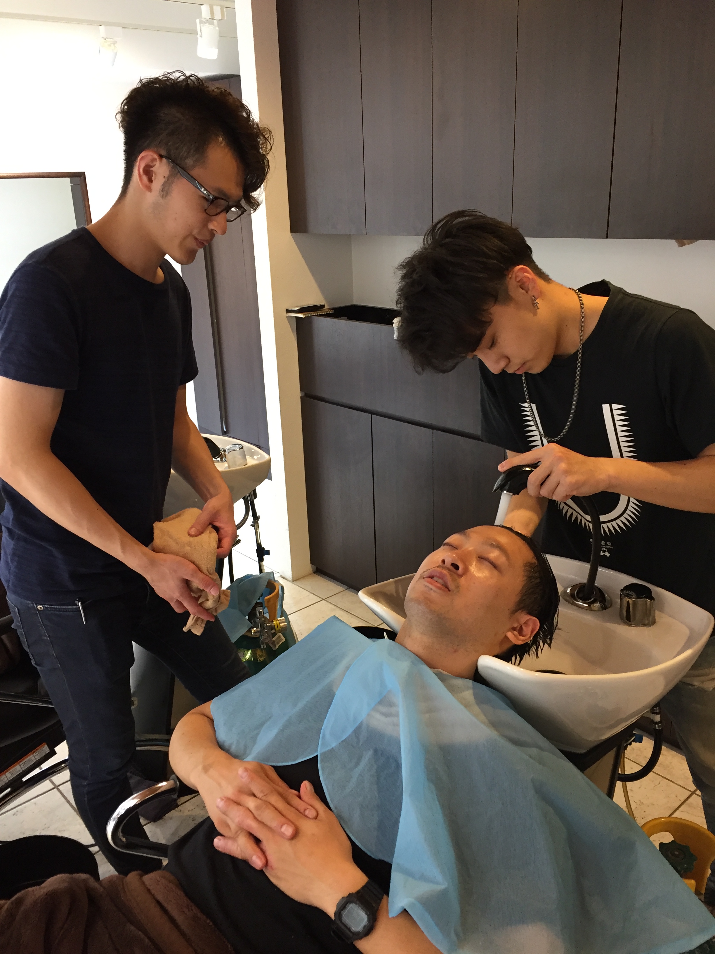 そしてさっそく、シャンプー練習が始まりました。