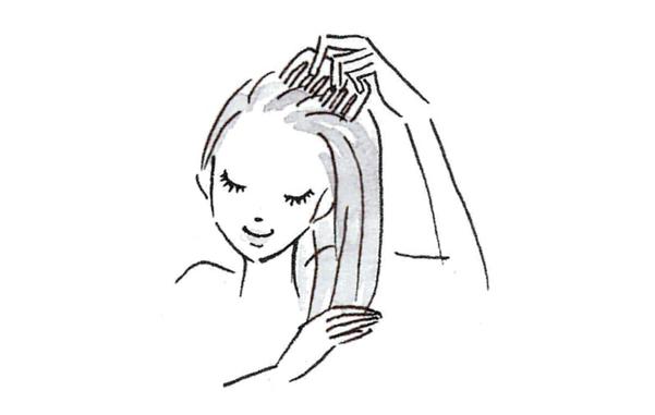 やり方は、38℃くらいのぬるま湯で、地肌と髪の芯までしっかりと予洗いをするだけ。