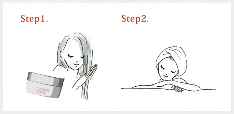 タオルを42℃くらいのお湯につけて、絞ってから髪をタオルに包み込み、約3分間そのまま放置してください。