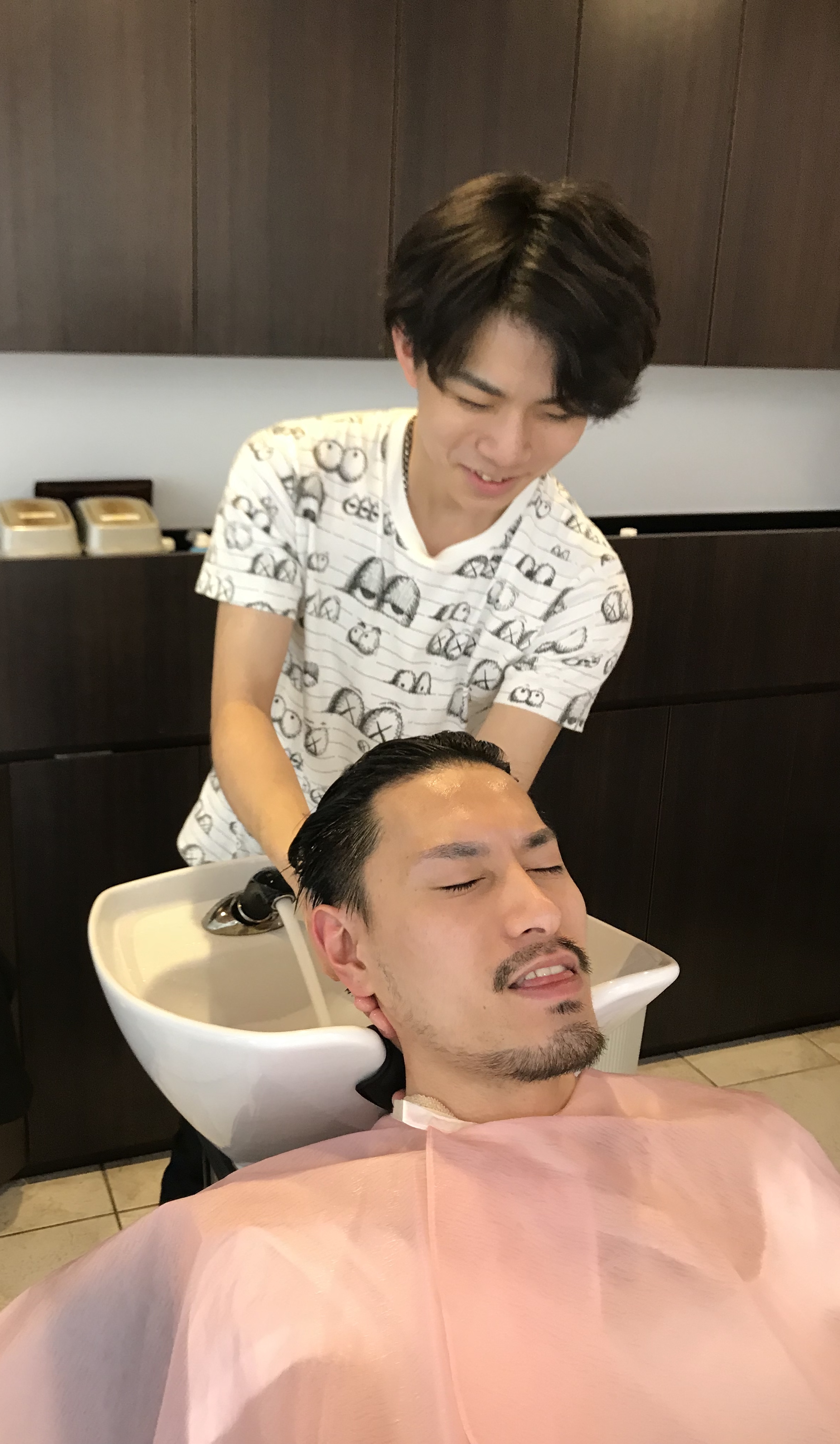 新人の渡邉君が入社してもう1ヶ月経とうとしてます!今日は最近は稲田さんと渡邉君のシャンプーを指導してます。