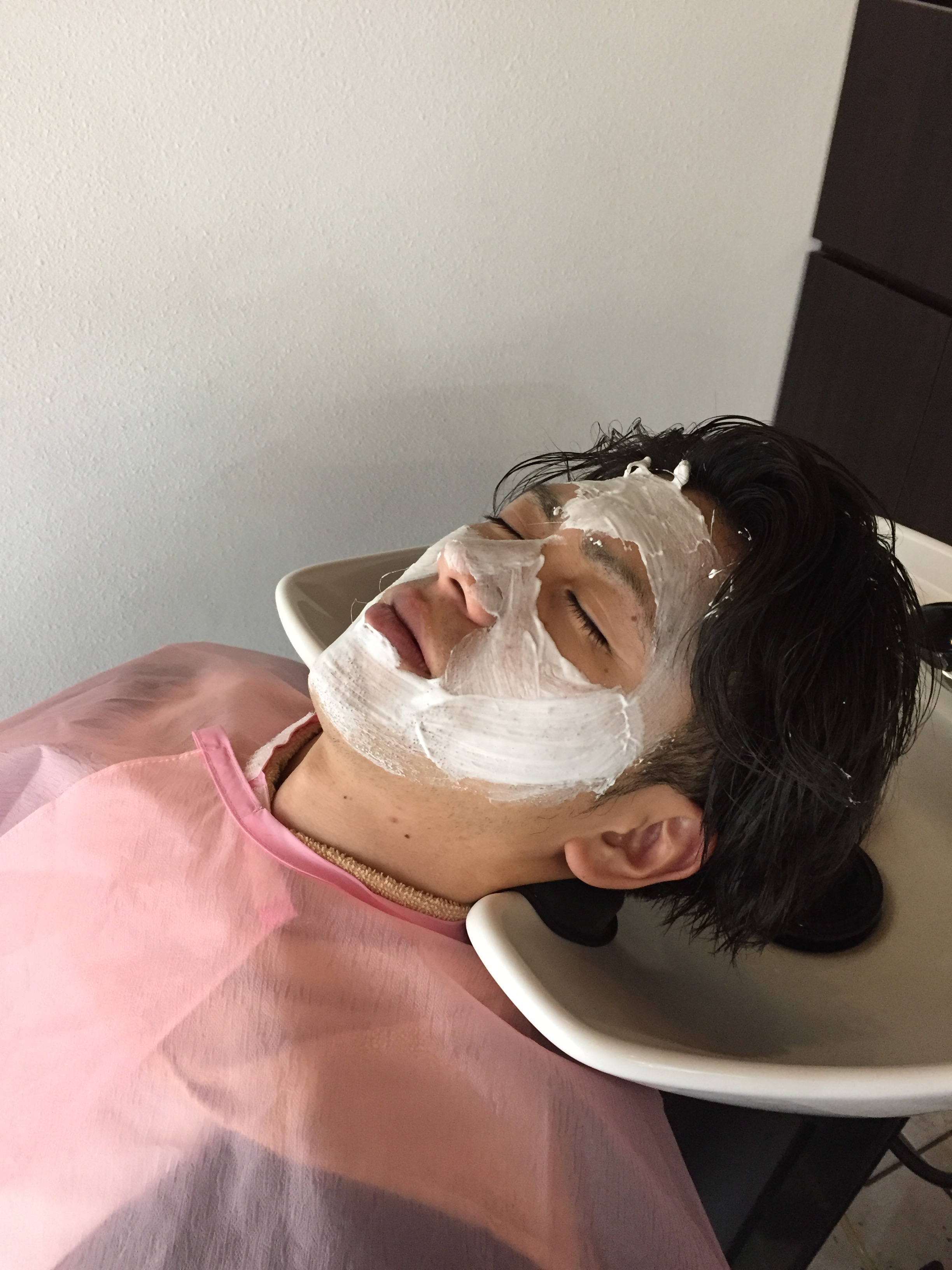 カットの後に洗顔を塗り、化粧水、乳液を使ってもらうサービスが始まります(^^)