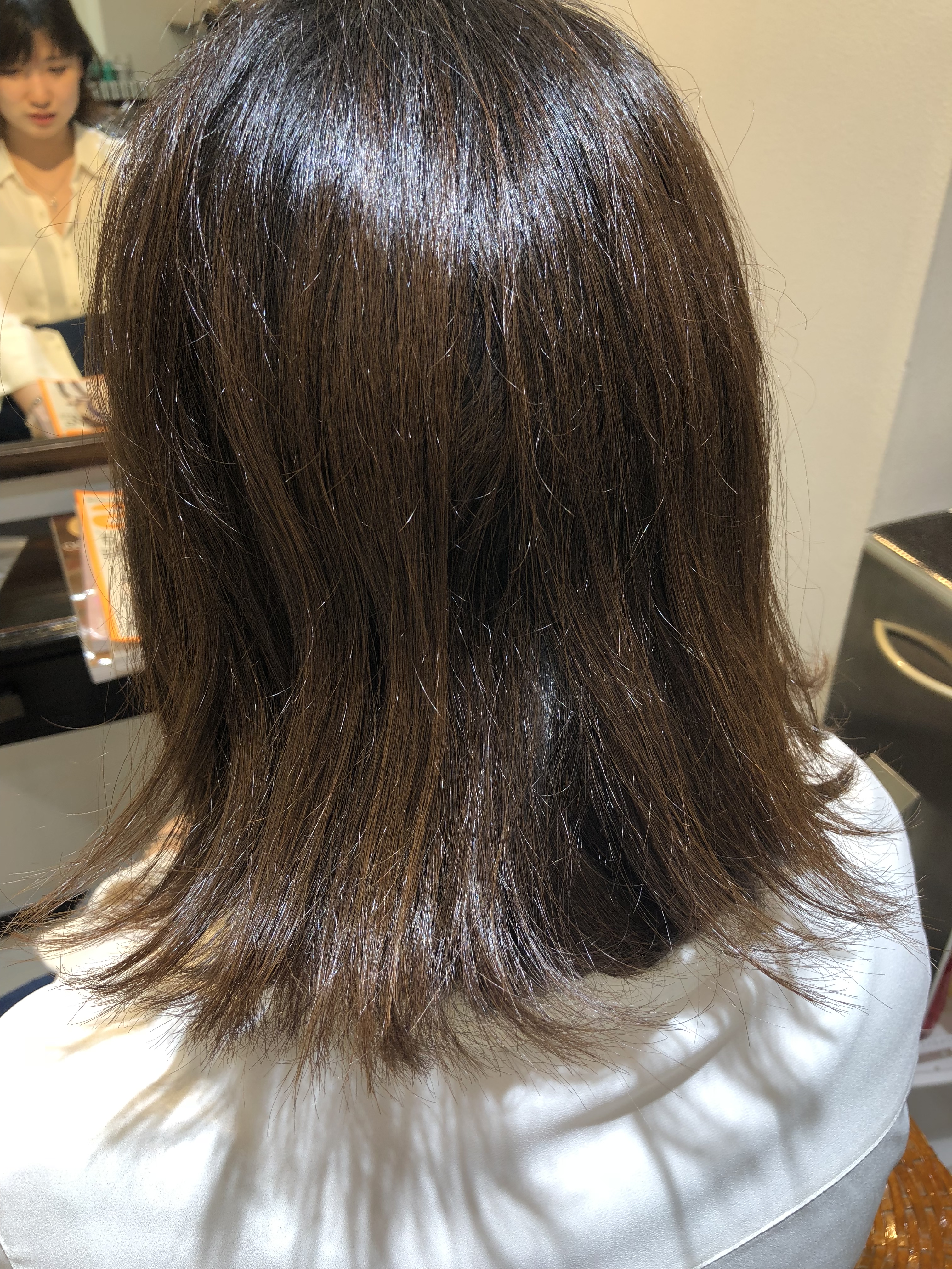 黄色く抜けていた髪の毛が紫味の効果で綺麗なツヤ感を表現☺️
