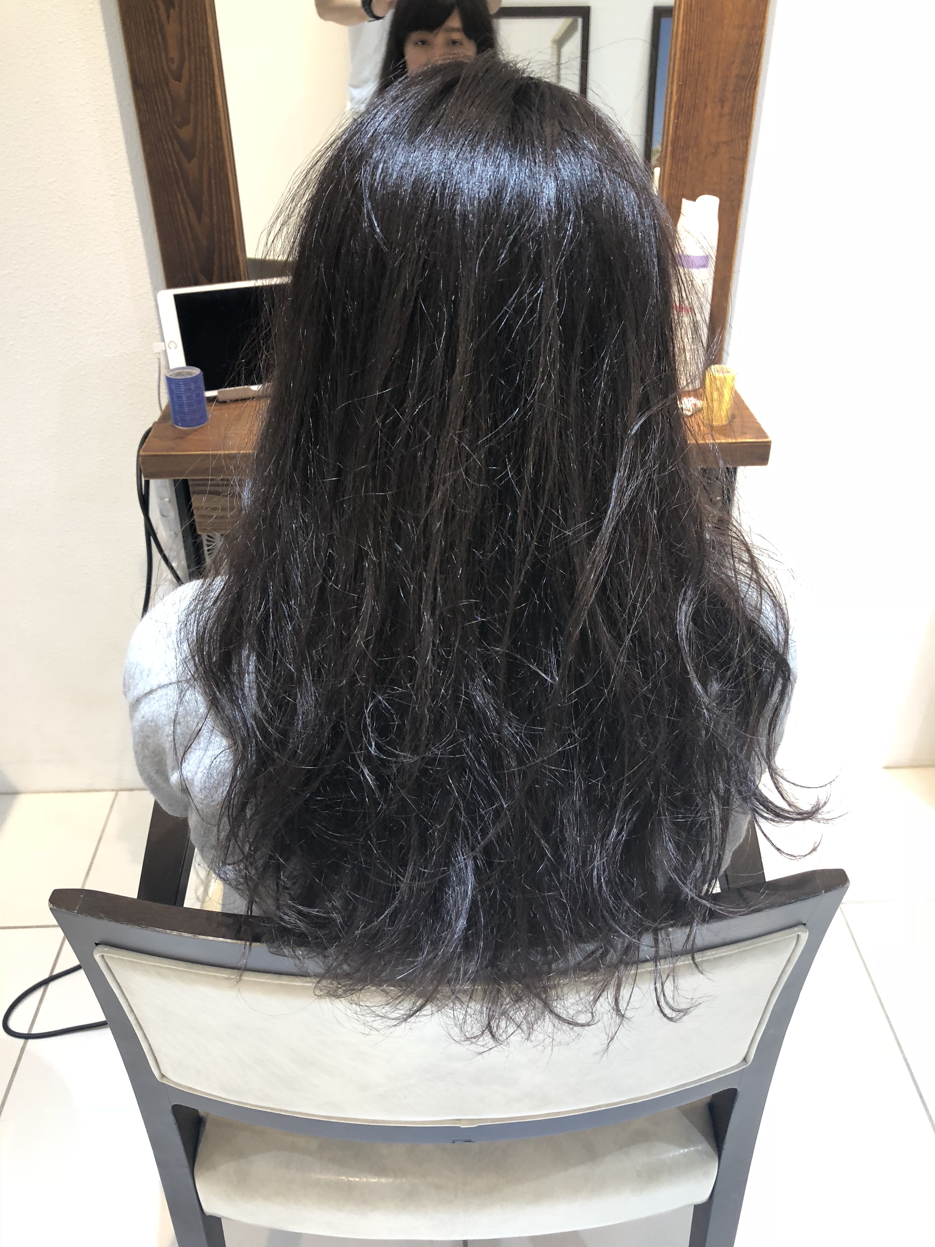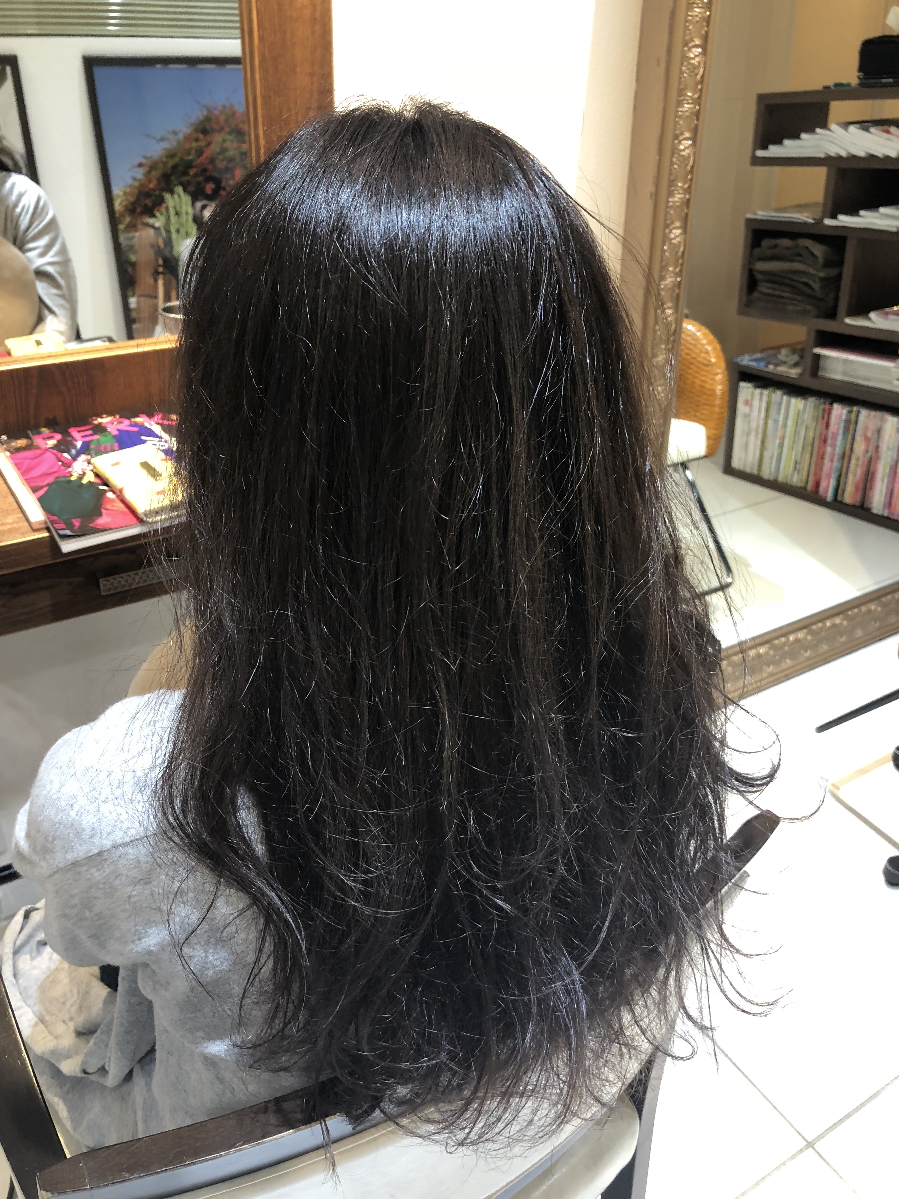 今回のカラー剤は最初のやつよりも、より紫味が多いため仕上がりを見てわかる通りやや紫がかっていますよね!
