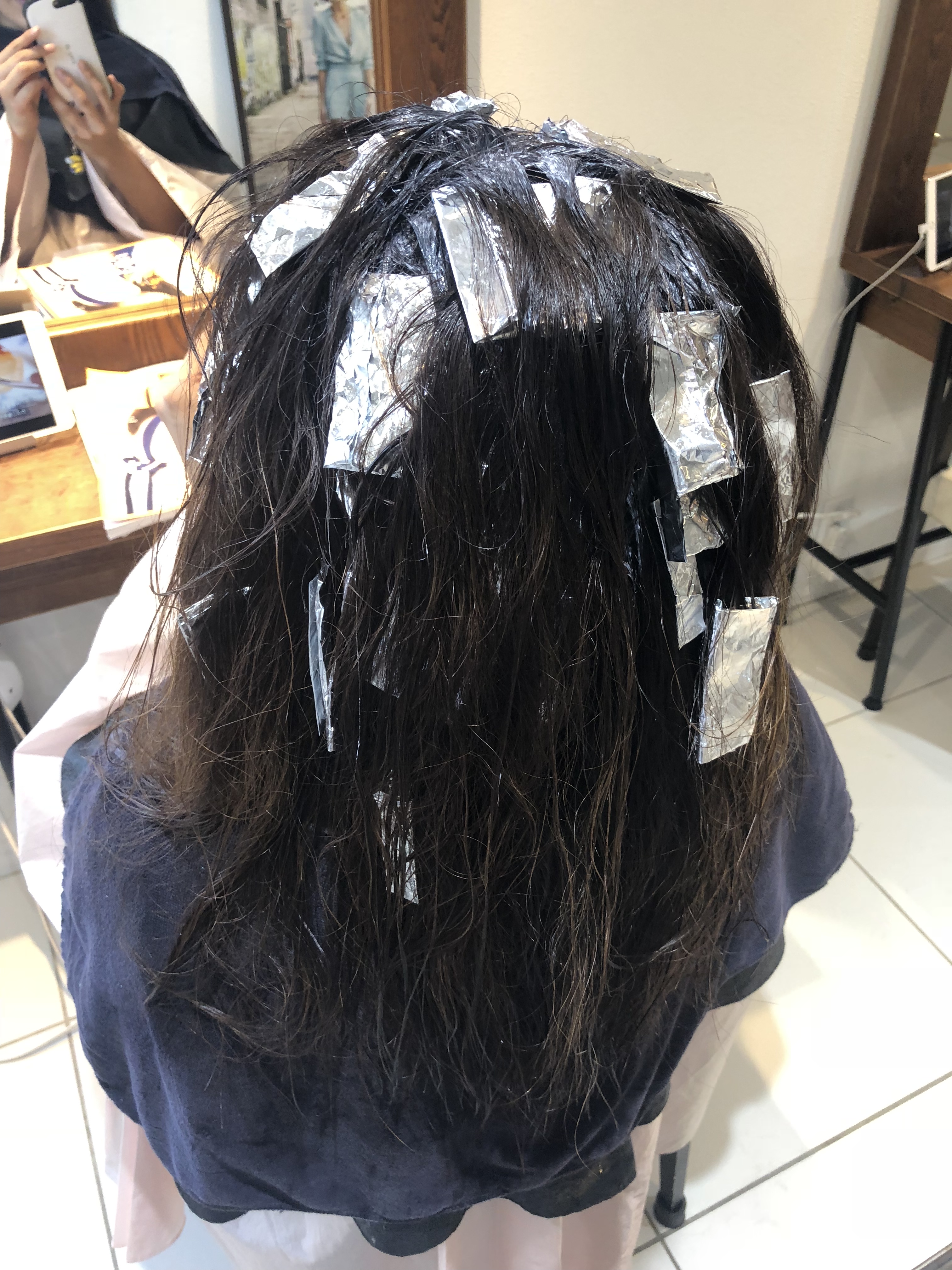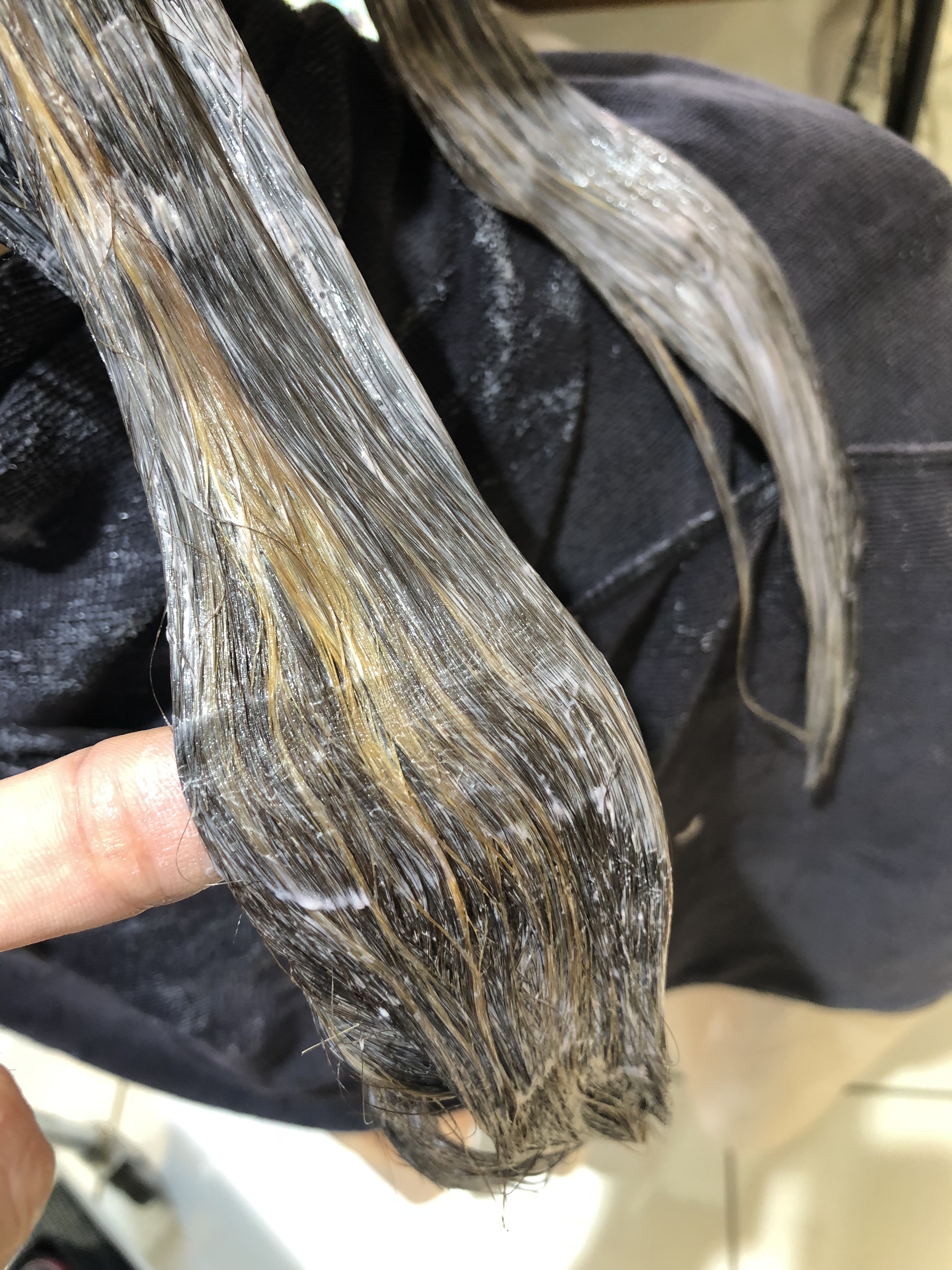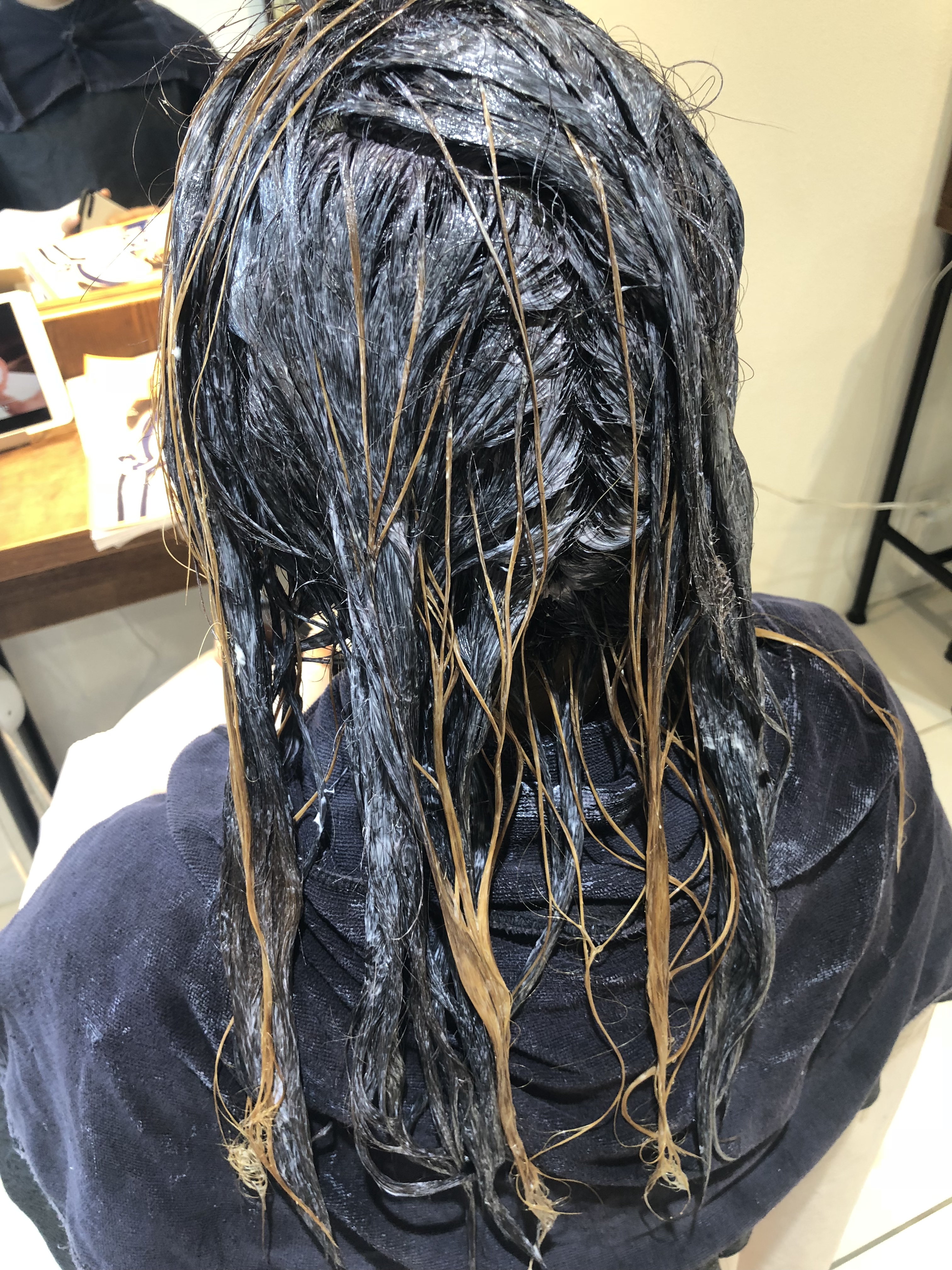 毛先8レベルのお薬でグラデーションになるようにしっかり塗布&放置👍