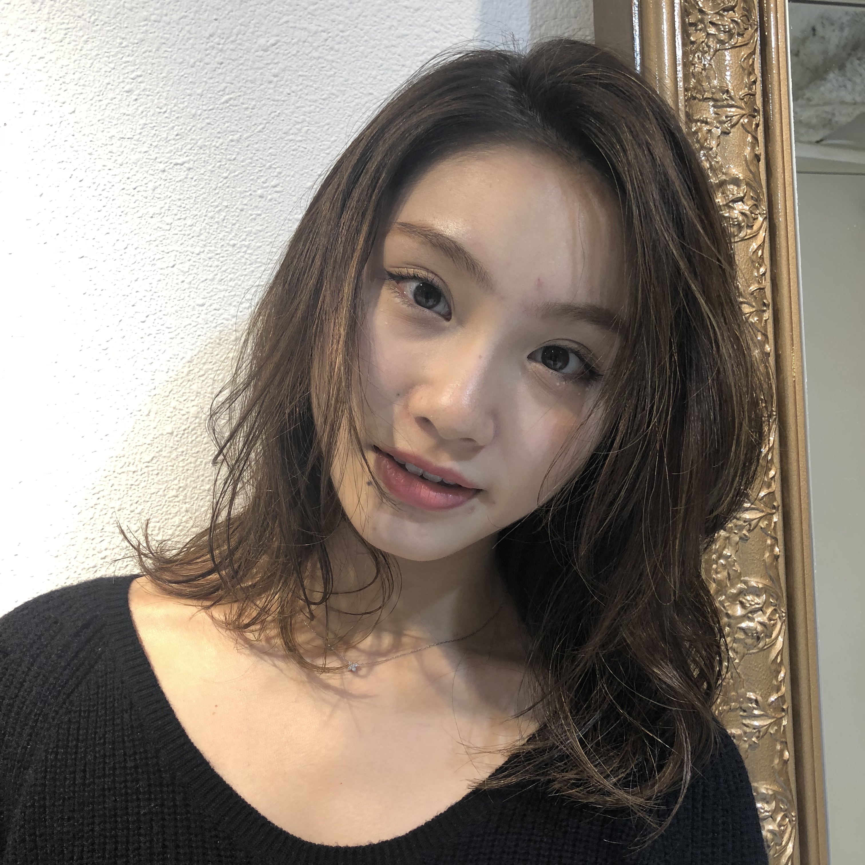 1枚目のお客様同様、前髪が長い髪型でトップがぺたんとしやすいので、ふんわり見える様にトップの表面と前髪には細めのハイライトを多めに入れて、毛先にも動きが出る様にハイライトをプラス。