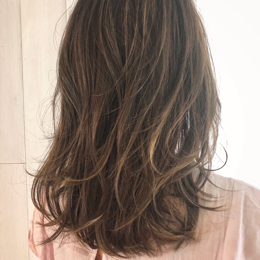 【ミディアムレイヤーヘア×ハイライトカラー×カーキベージュカラー★】