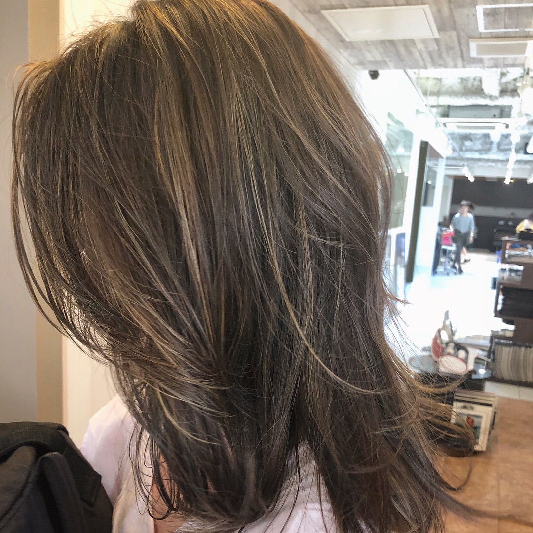 【セミロングヘア×ハイライトカラー×アッシュグレージュカラー★】
