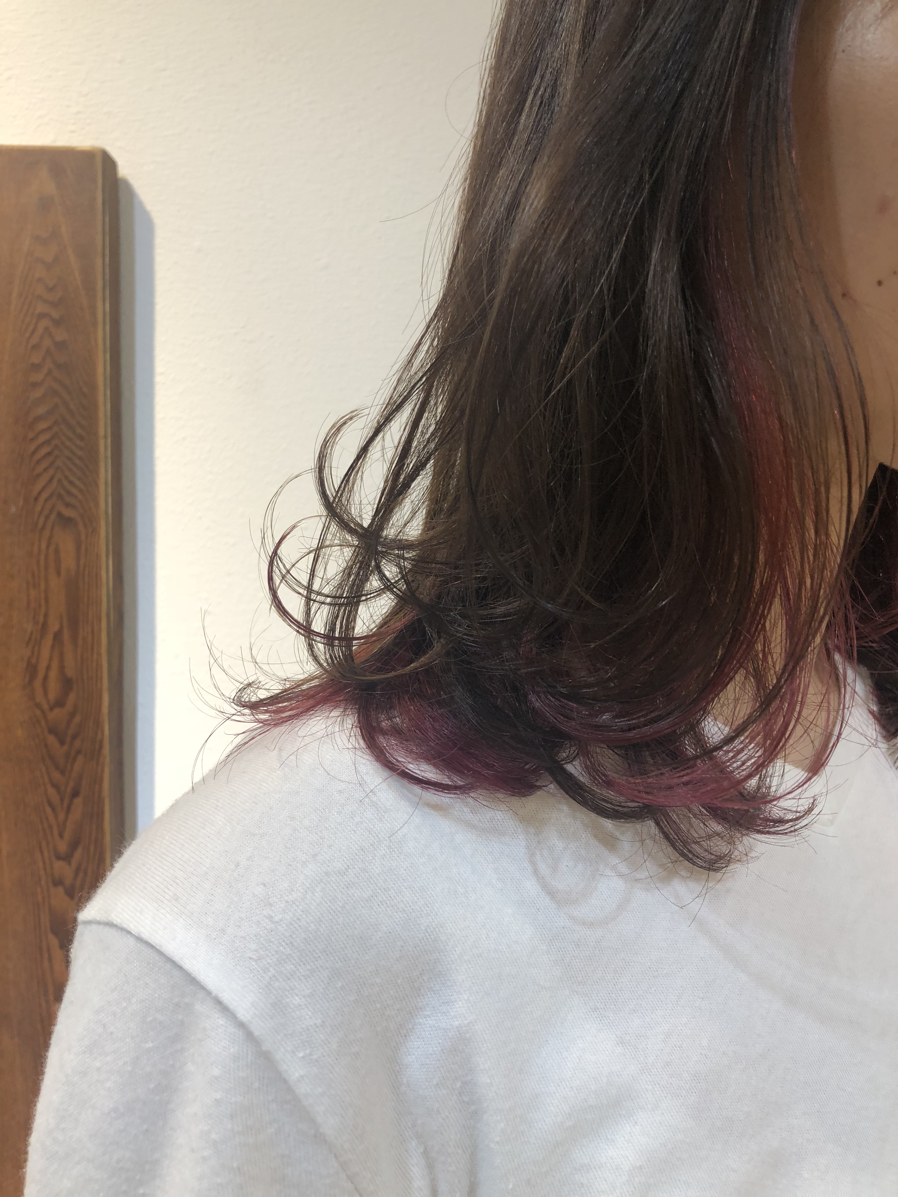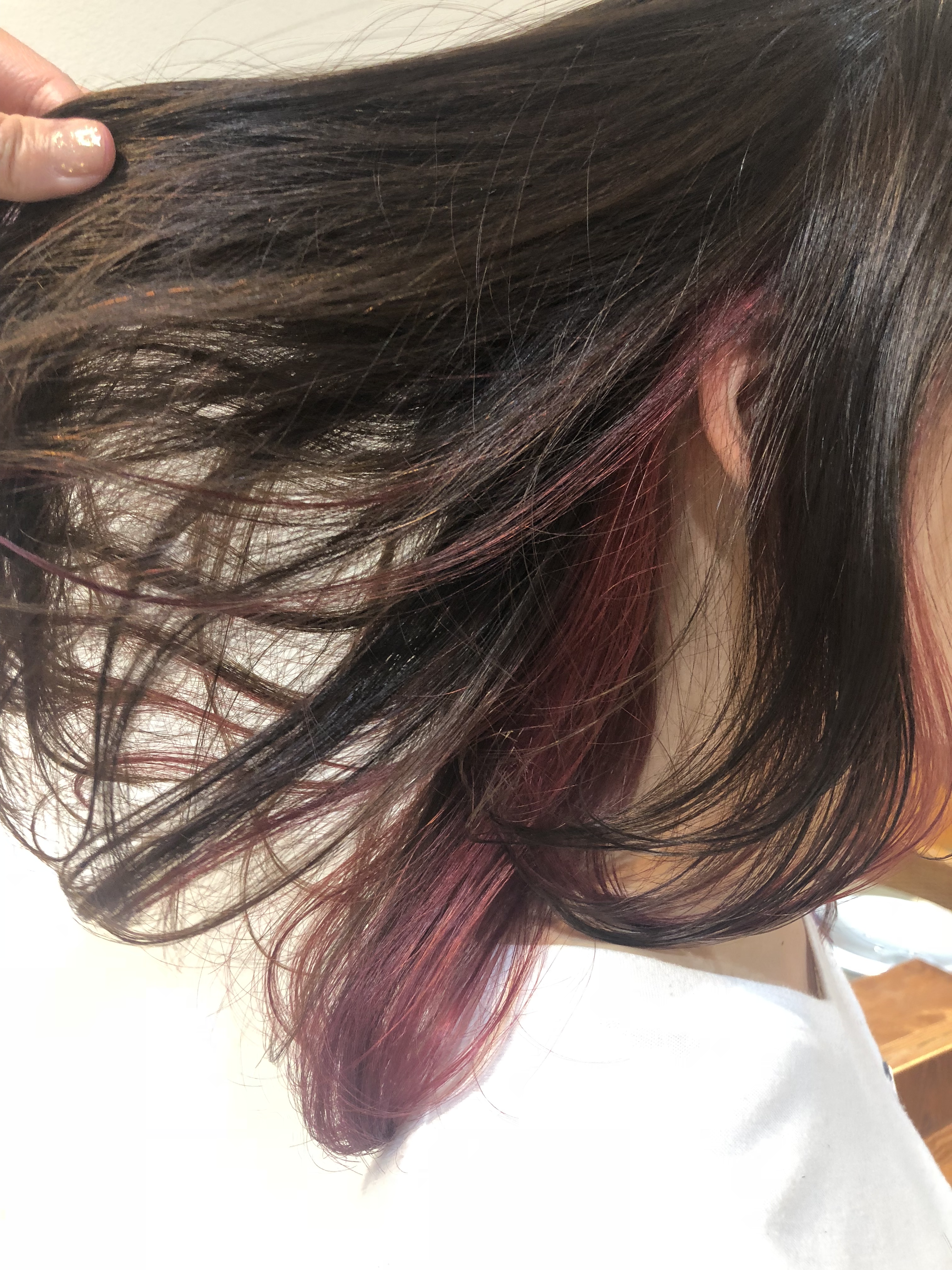 髪の毛か動くたびに、チラッと見えるピンクカラー♡