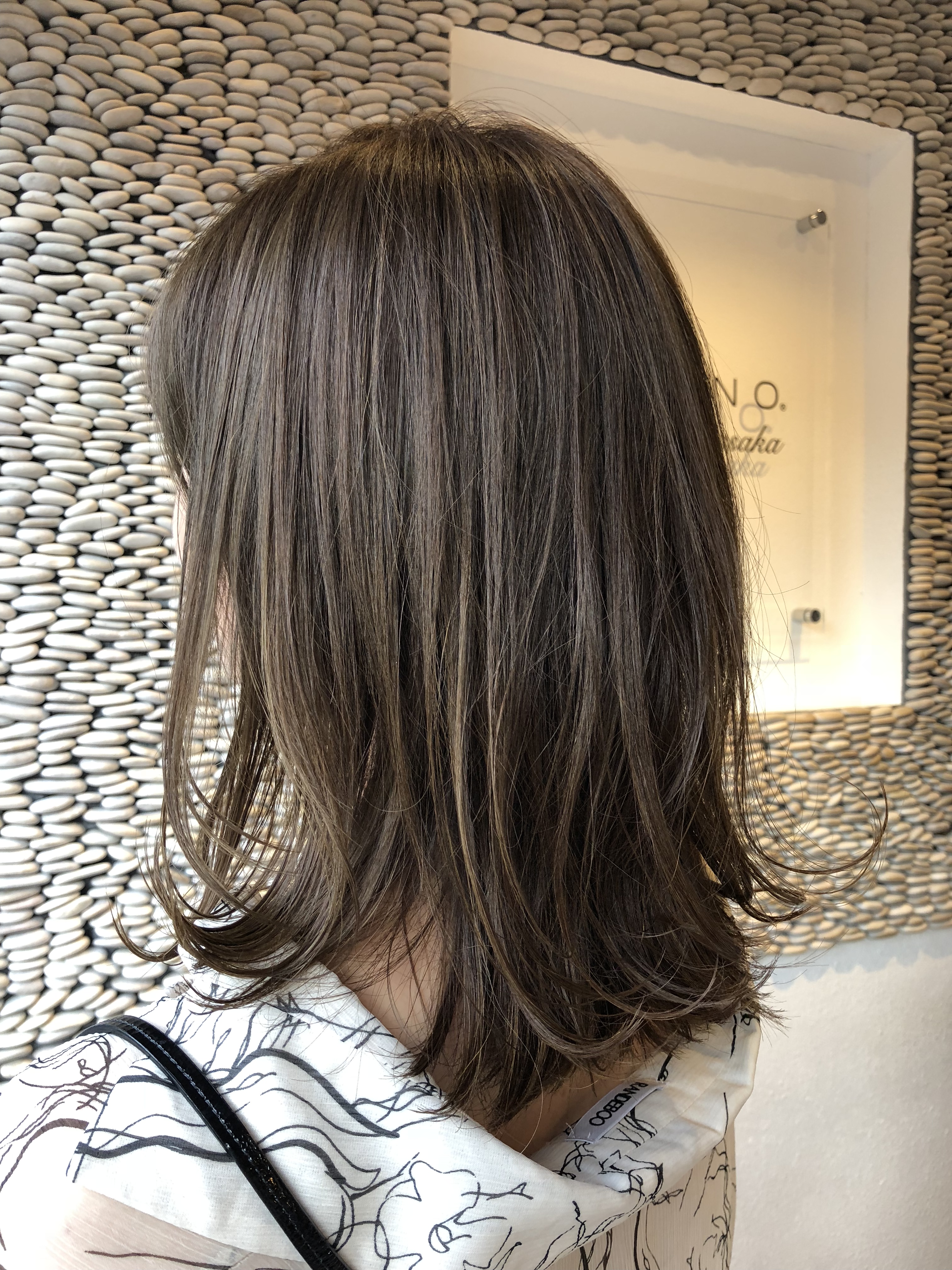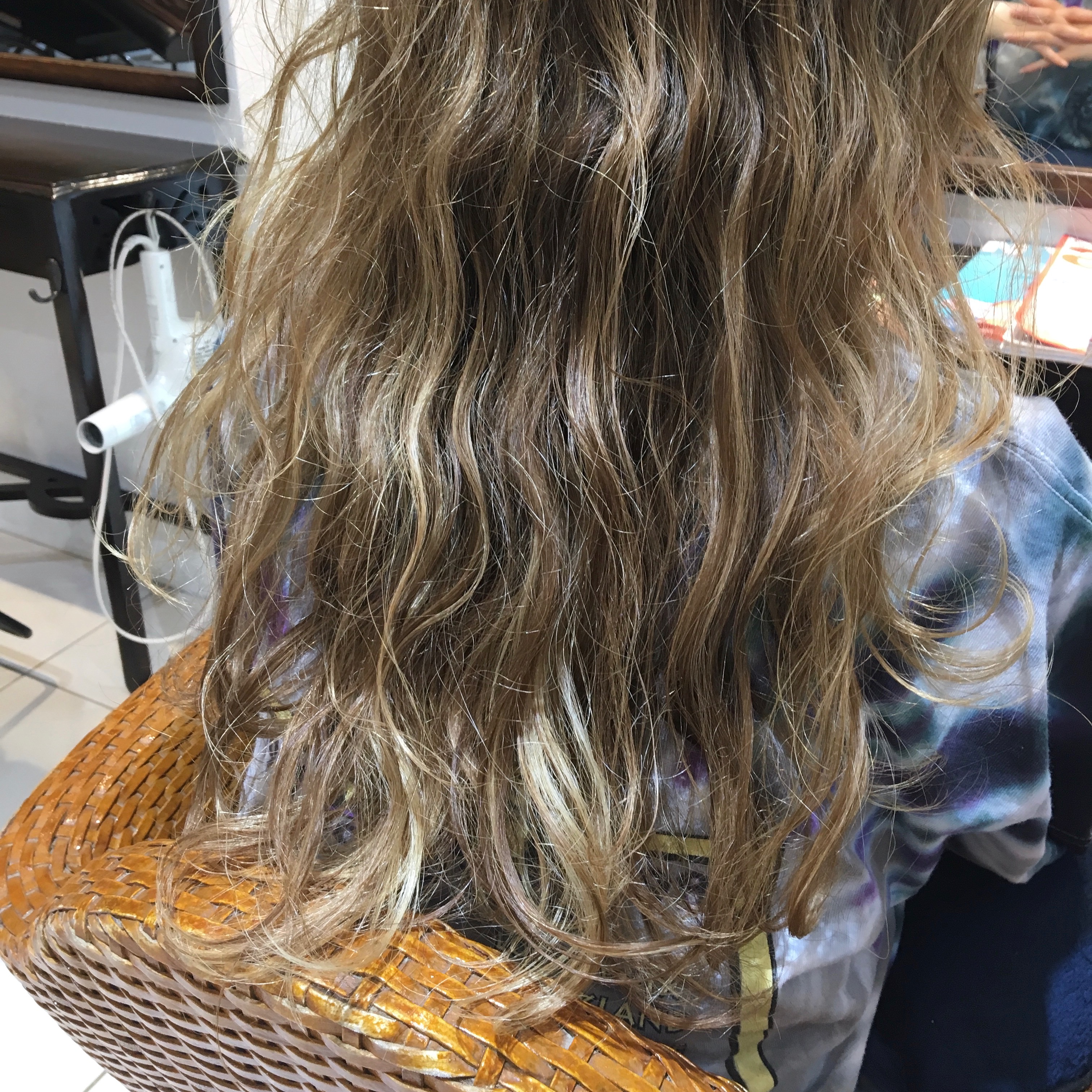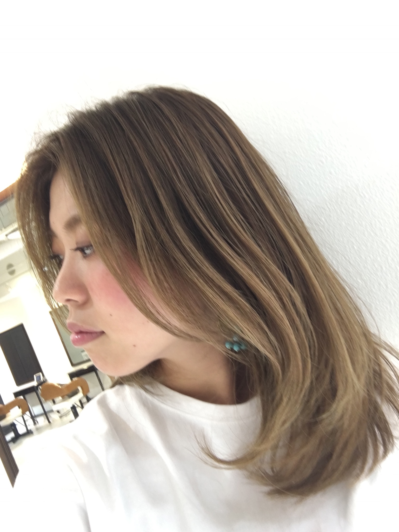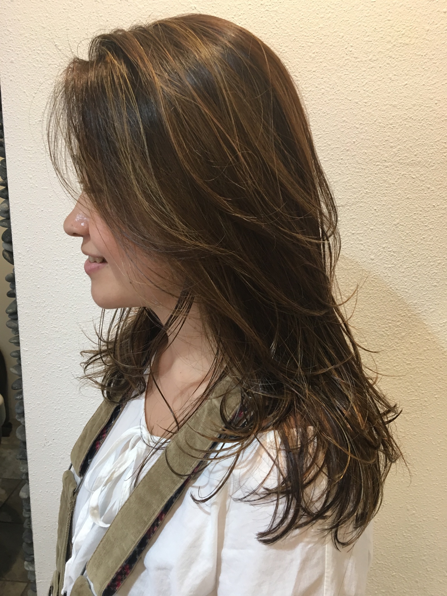 根元には、細めのハイライト。毛先は過去に入れたハイライトが重なって、ナチュラルなメリハリのあるグラデーションになります…★