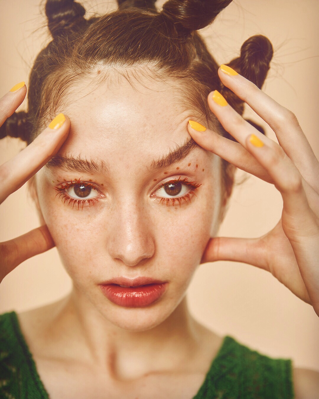目元や口元に色をつけて