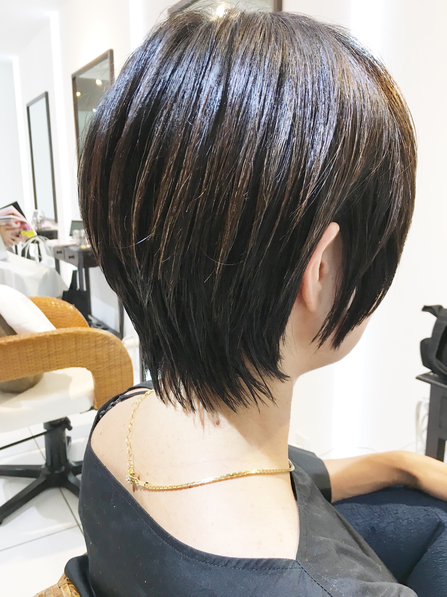 首に這うようにカットした状態からほどよく隙間感を出してあげるとこのようなえりあしになります☆☆