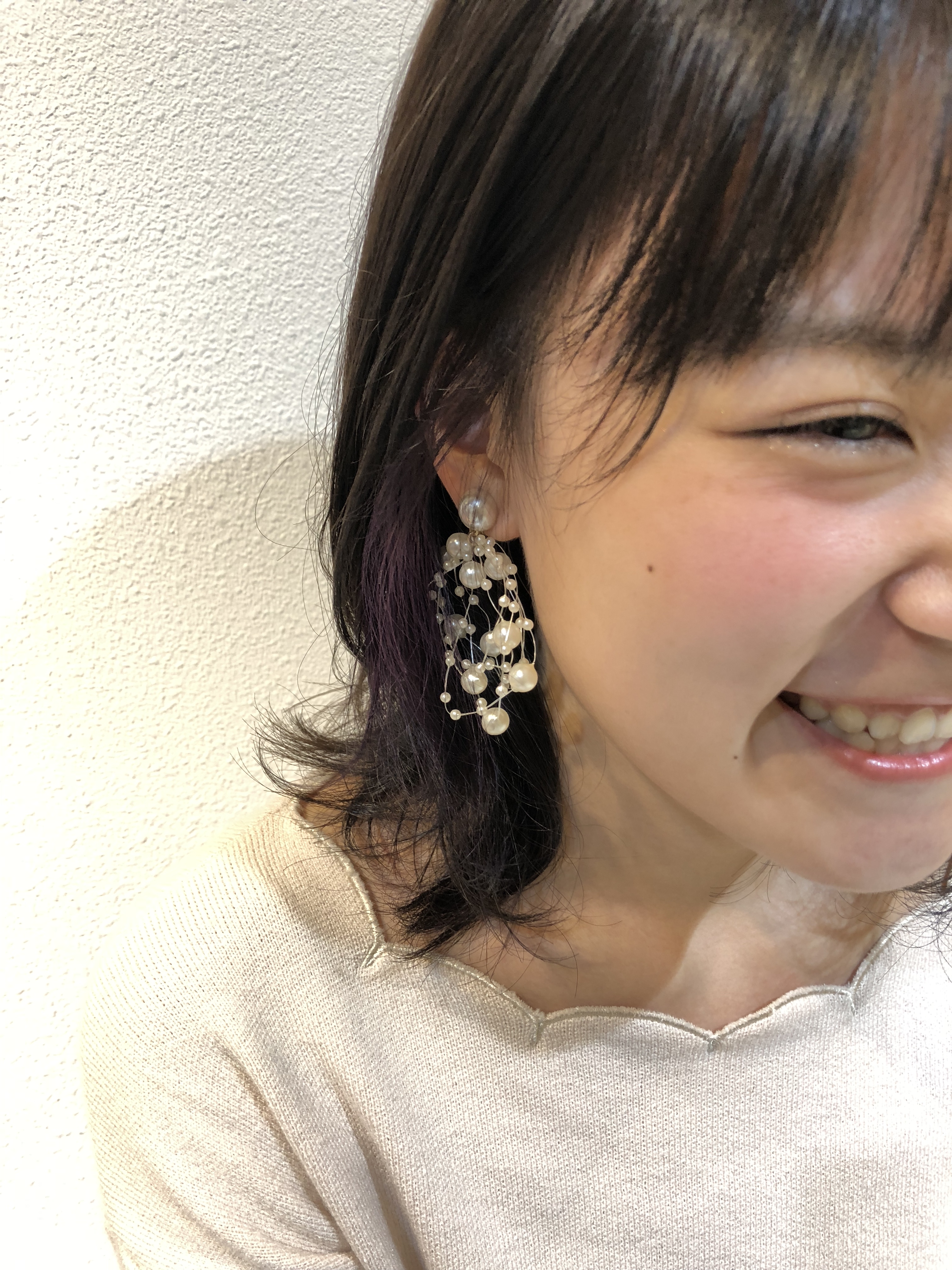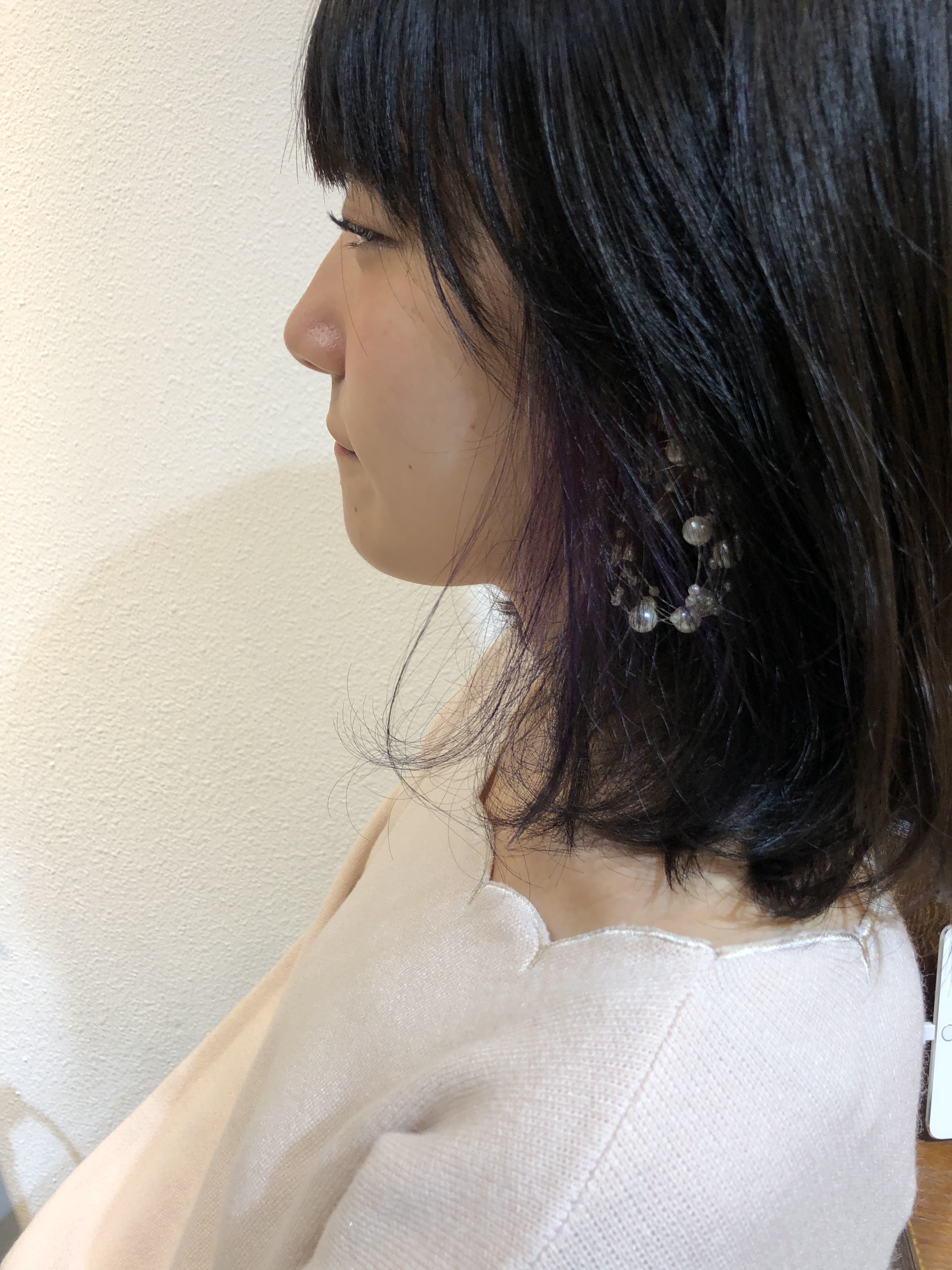 彼女は初めてのインナーカラーだったので最初は小さくチラ見せな感じでパープルを入れました🤗