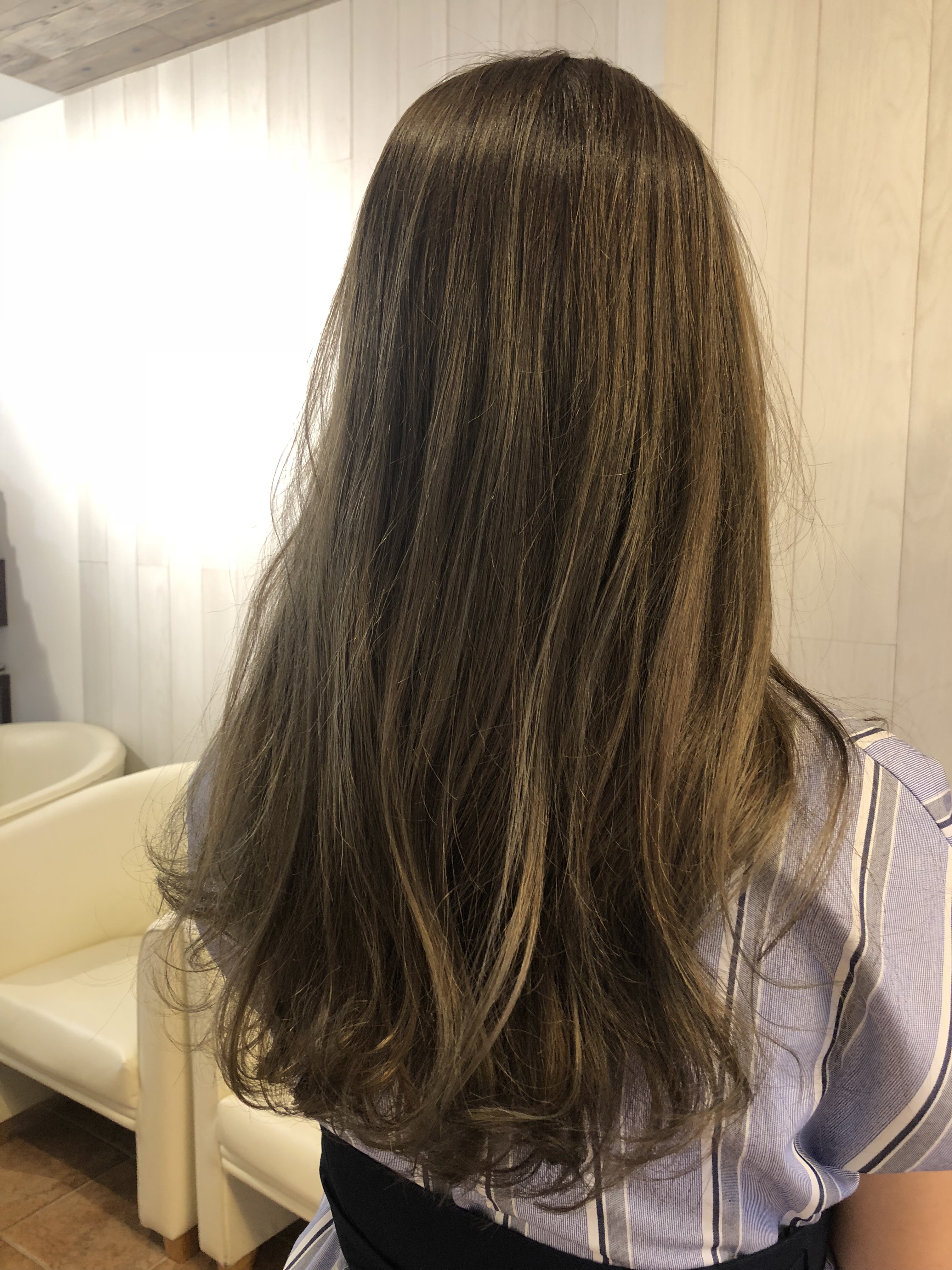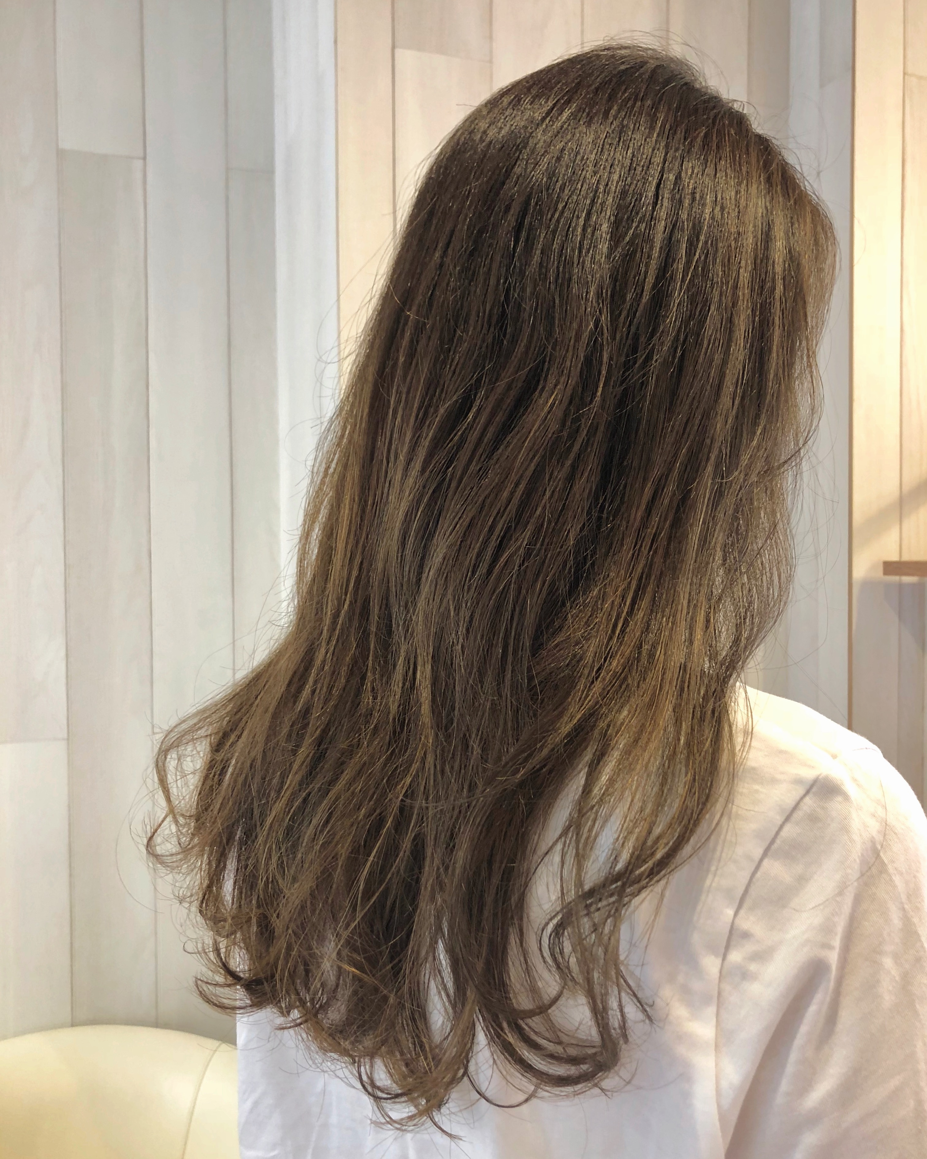 日本人の赤味が強くて、張りコシが強い毛質だとなかなか表現するのが難しいナチュラルなグラデーションカラー。