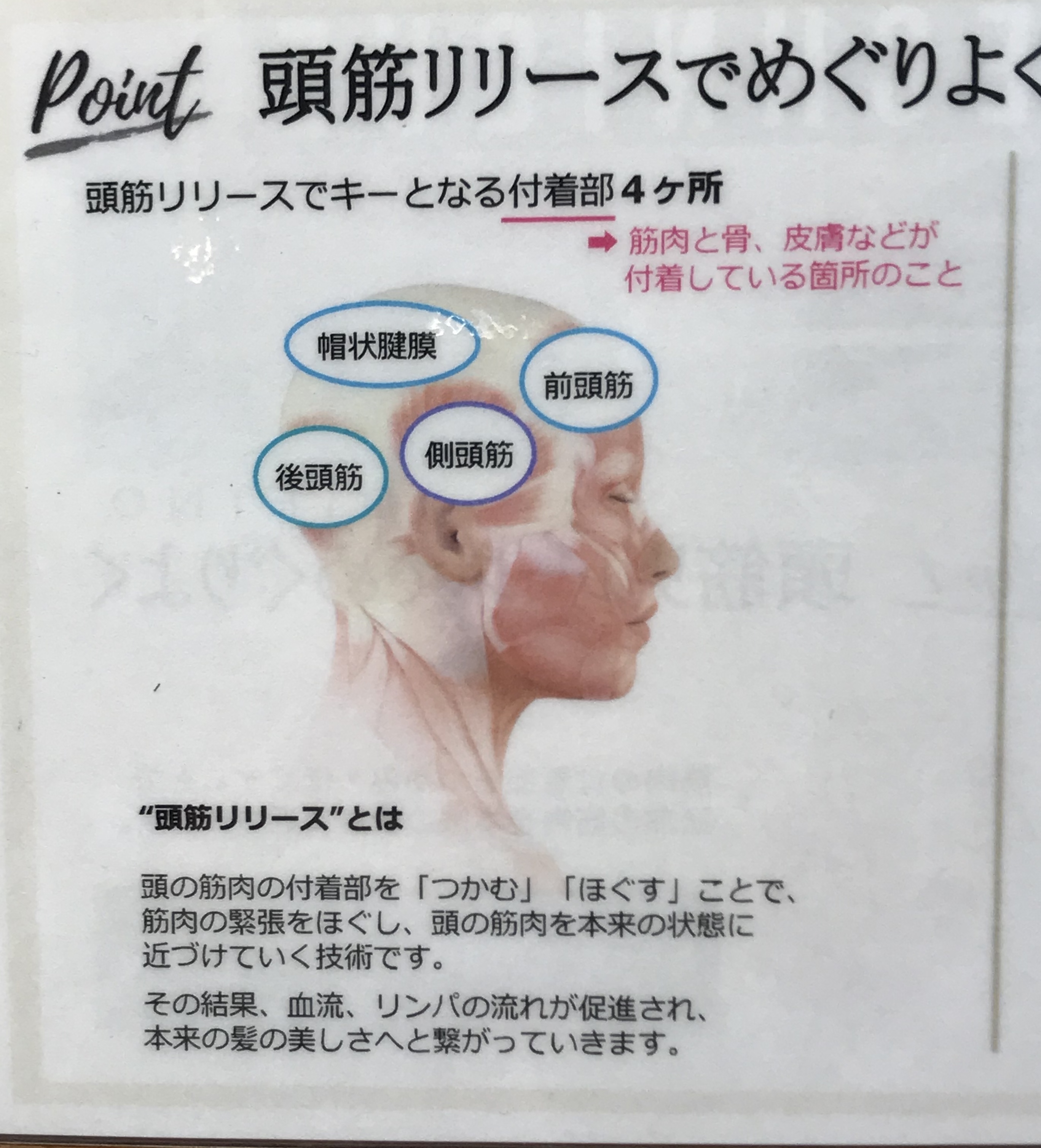 「オージュアスパ」では頭筋リリースという技術でしっかり筋肉をほぐし、ツボを刺激します!