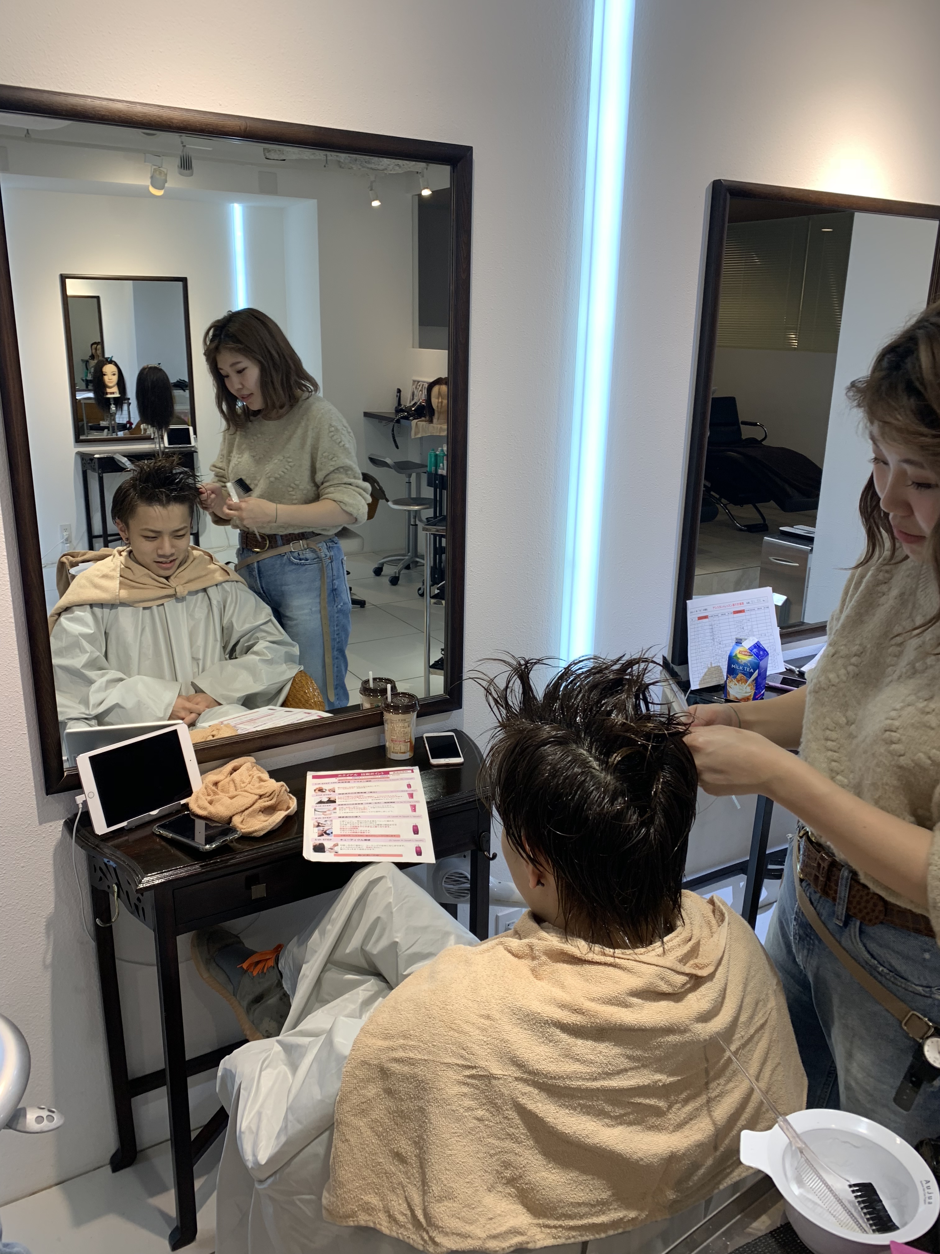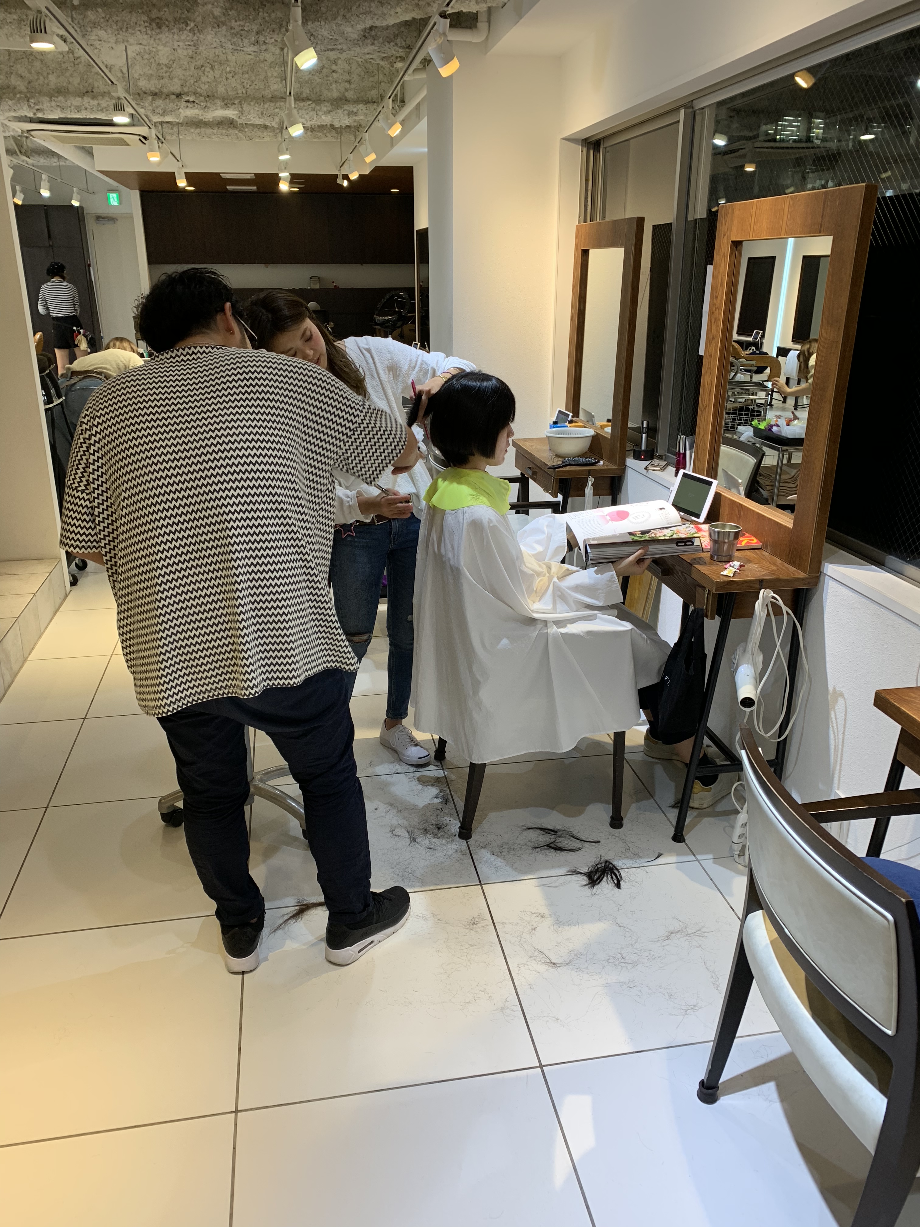 僕は今パーマの練習をしていて、まだ、カットができないのでカットはスタイリストの富田さんに切ってもらいました。