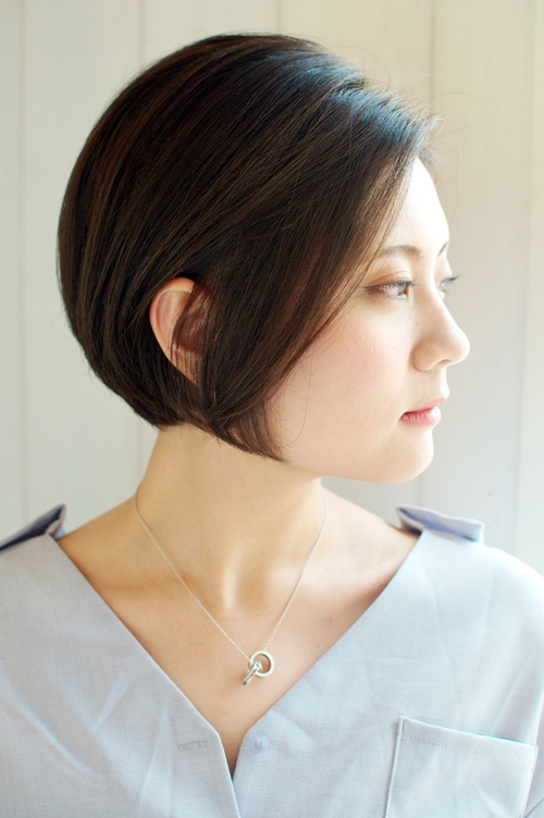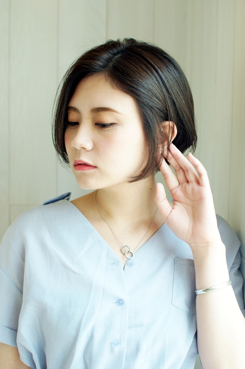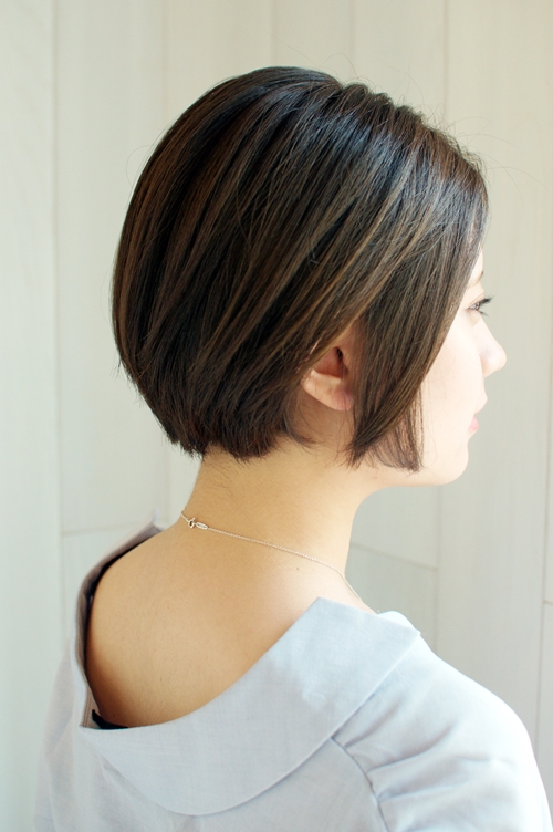 クールに見える前下がりのショートボブも色とカタチで柔らかさを♪