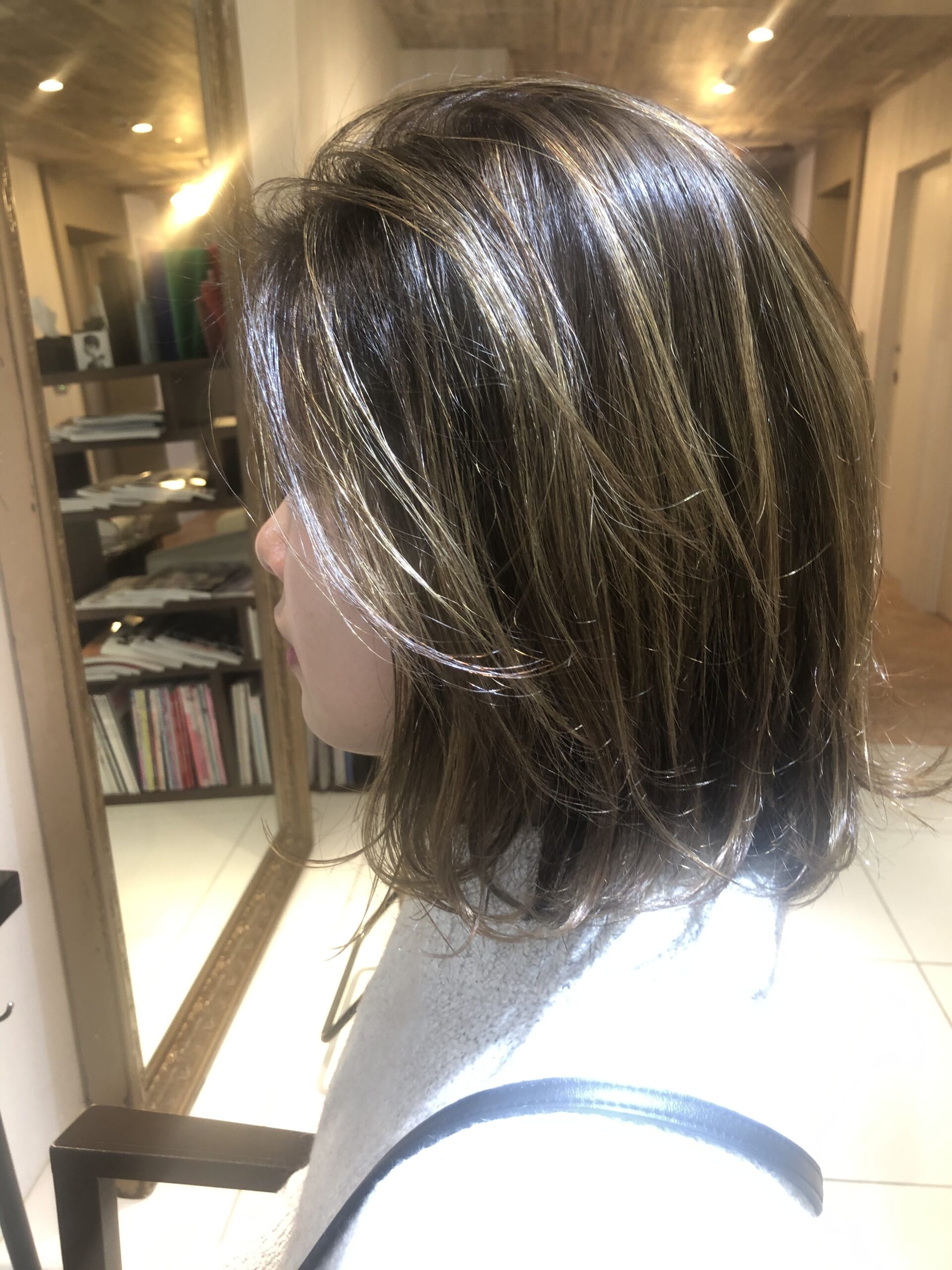 透け感とツヤ感を出しつつ、立体感を出すためにハイライトを入れたカラーが人気です★