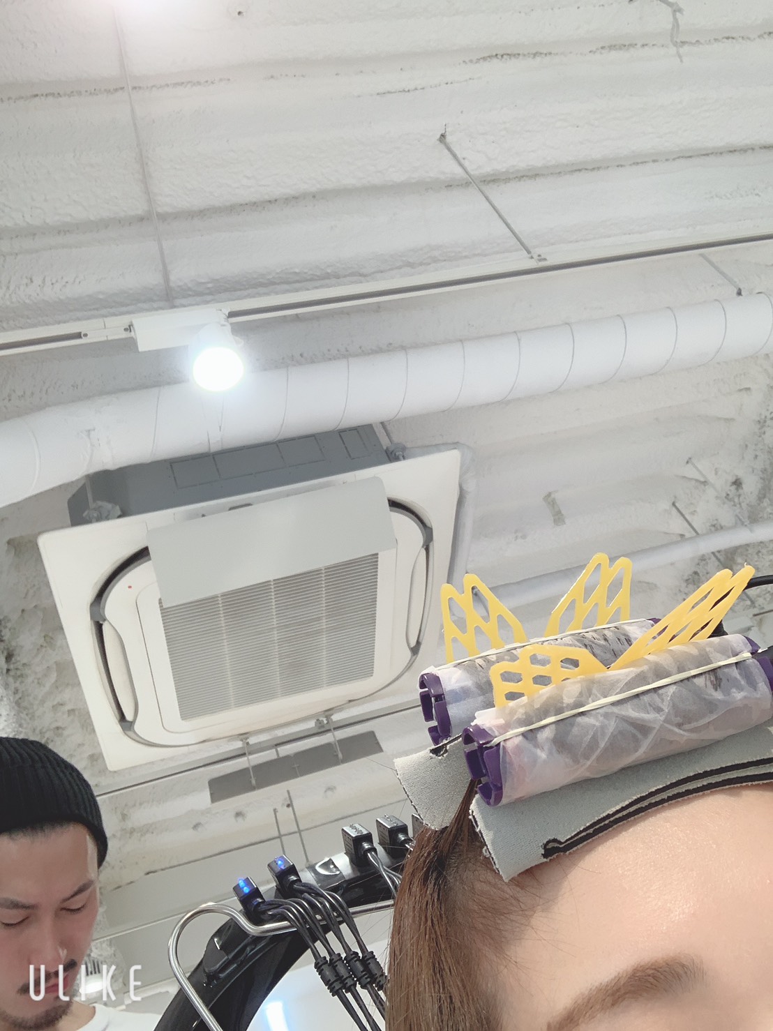 ということで、営業後に槌田さんの髪にデジタルパーマをかけました!