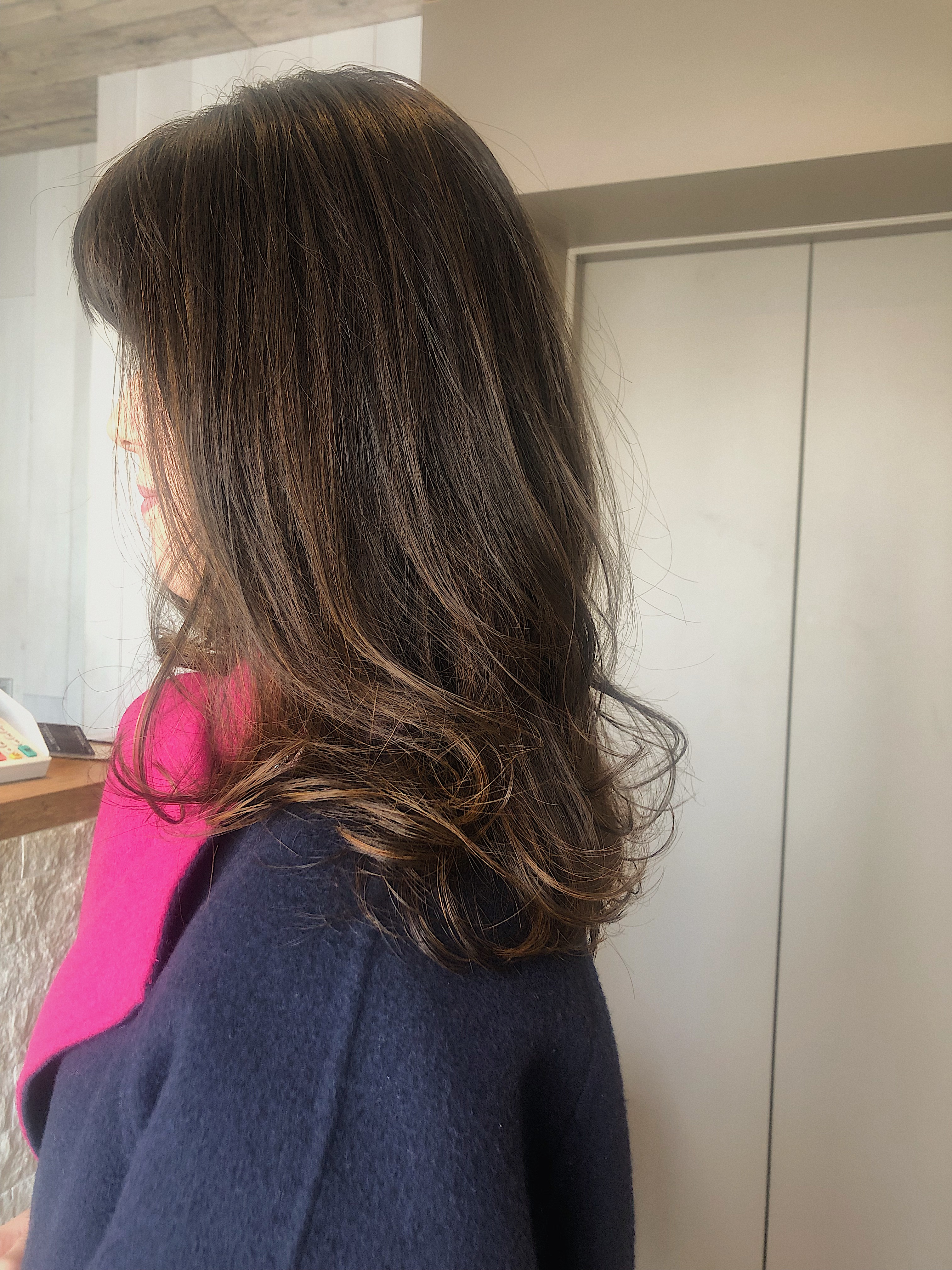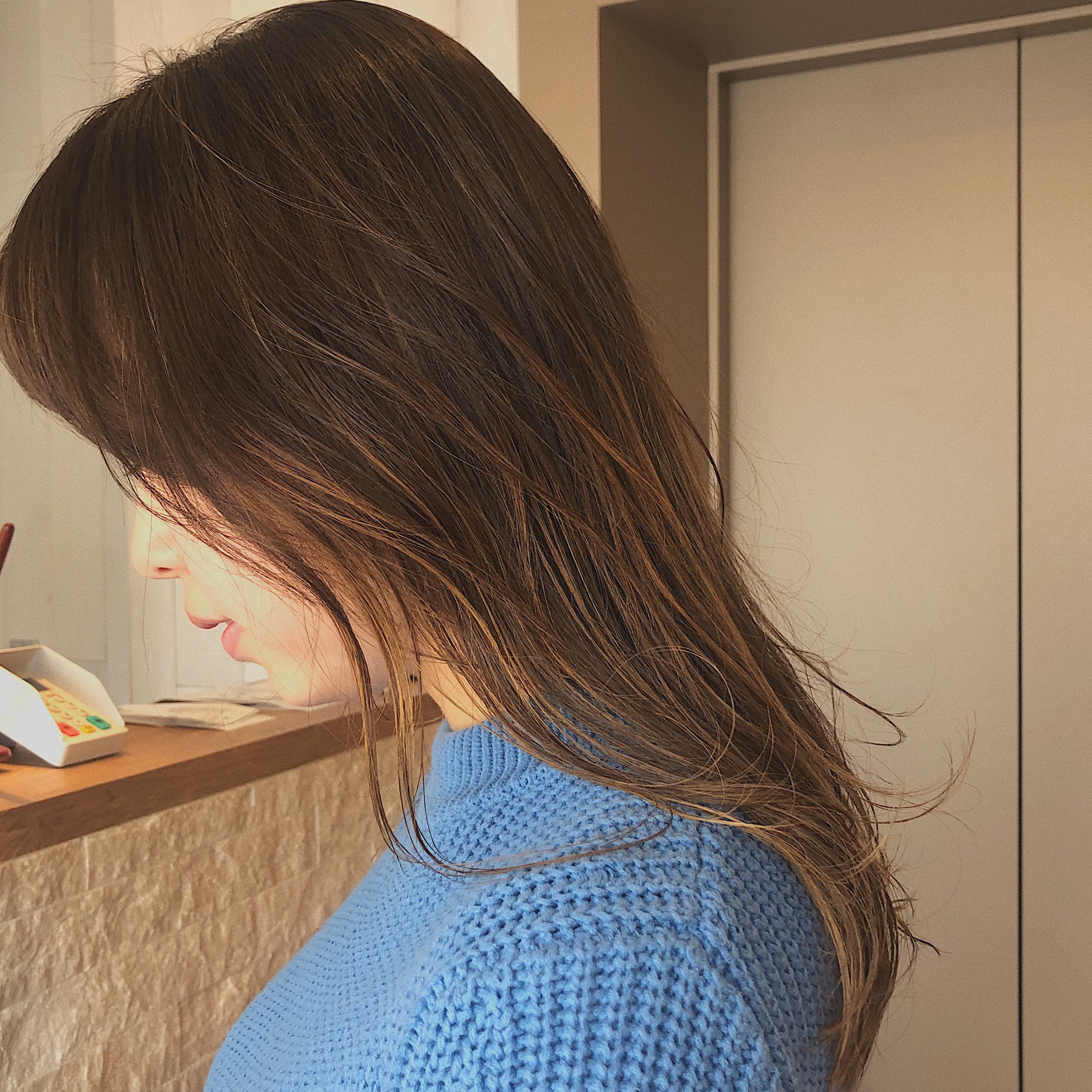 毛先にいくにつれて、太く広がっていくナチュラルハイライトカラー(キョッシュ)★