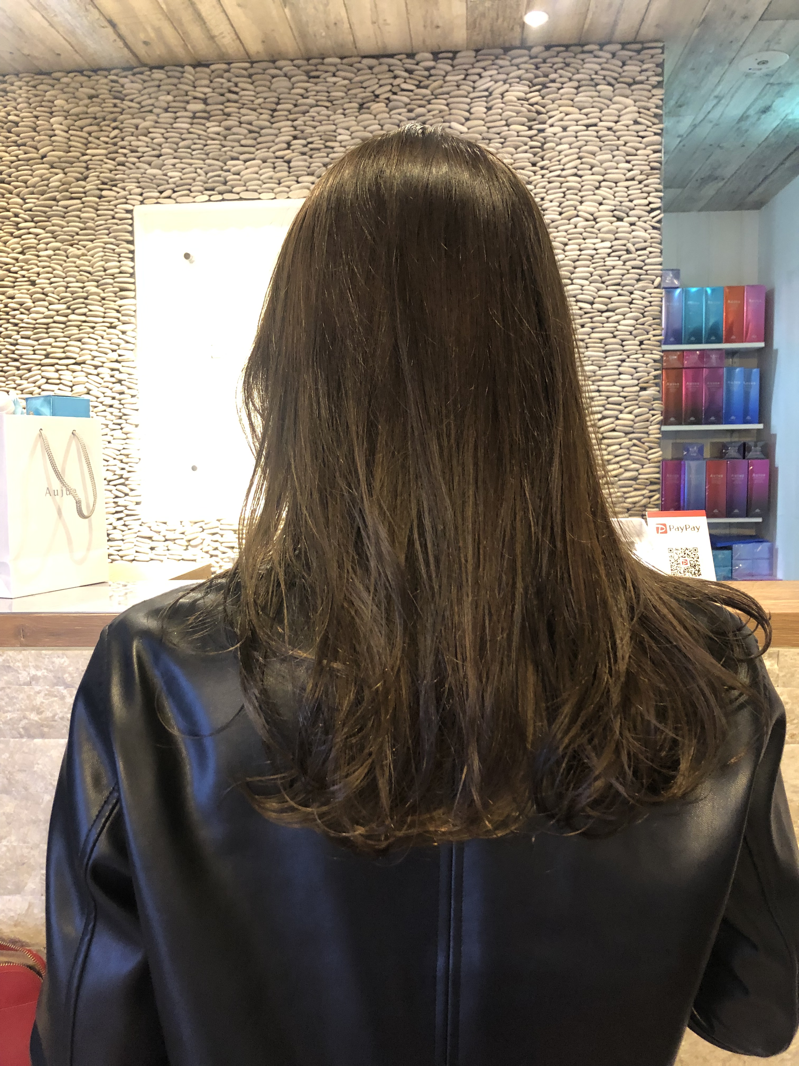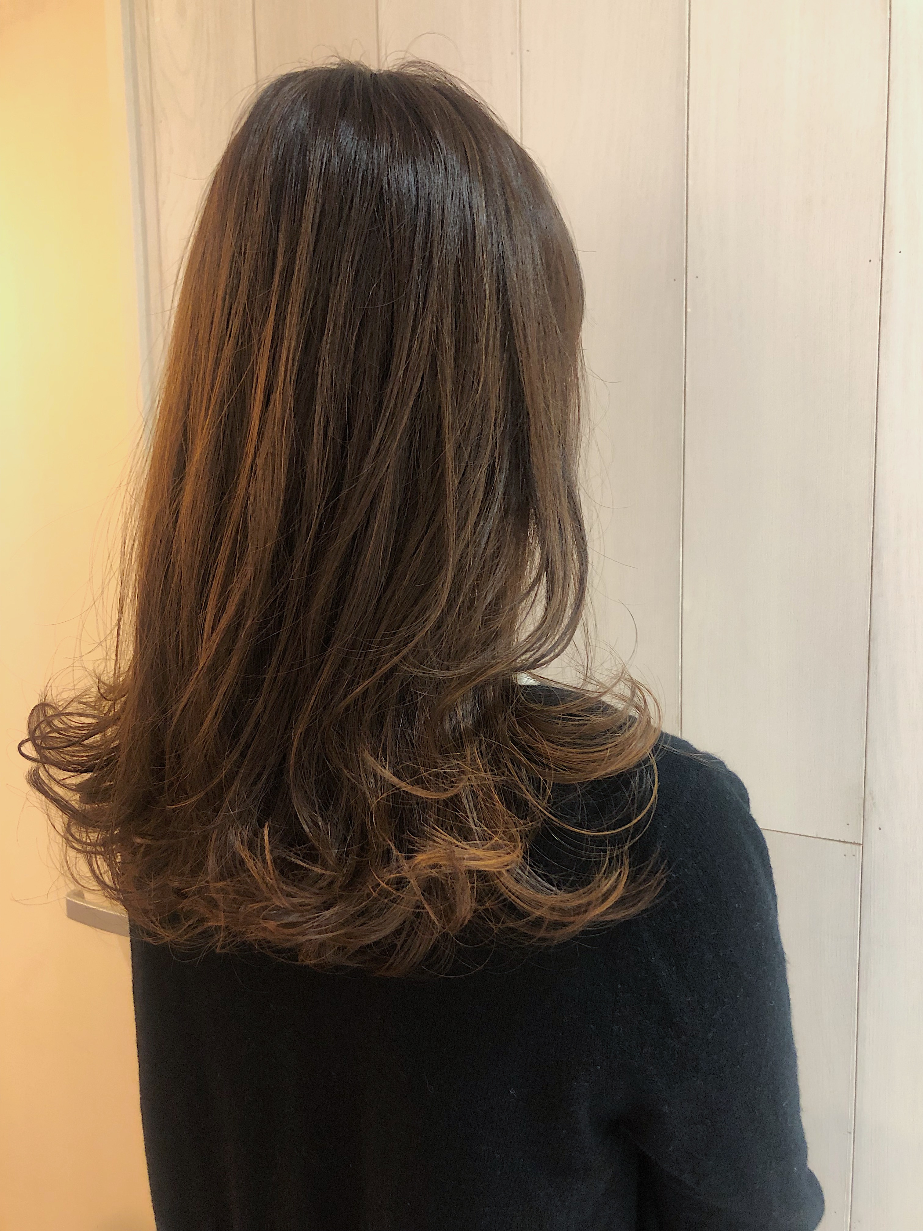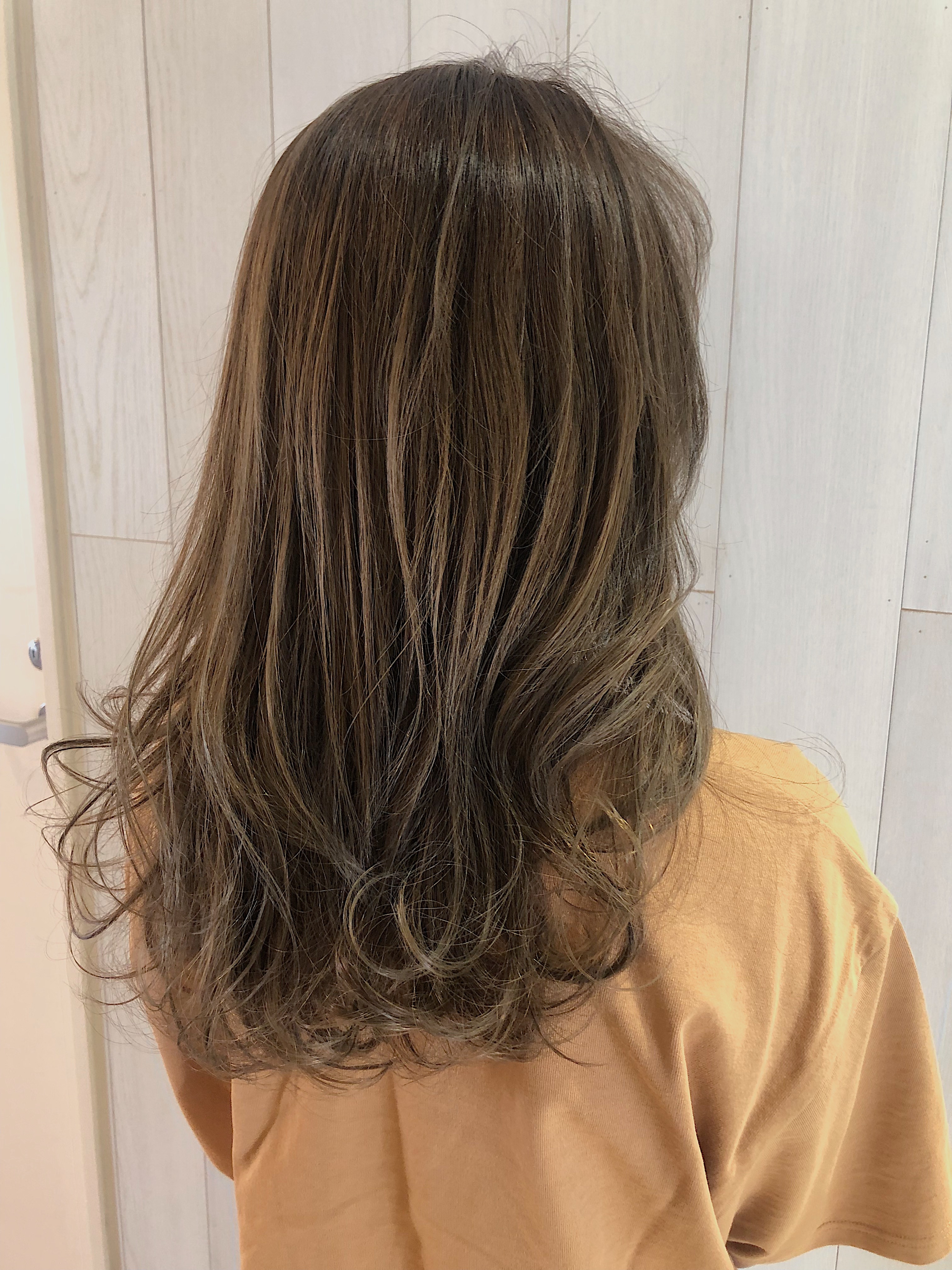 ダメージをあまり出さずに、透明感とツヤ感のある仕上がりにしてくれるカラー。店内人気No.1カラー。